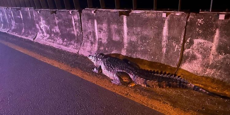 PODER Y CRÍTICA | REDACCIÓN | Un cocodrilo de aproximadamente dos metros apareció sorpresivamente en una calle del centro de Ciudad Isla la tarde del 28 de octubre de 2025, generando alarma entre los transeúntes. Testigos aseguran que el reptil salió del río cercano y se desplazó por la calzada, donde un vecino, armado con un machete y una rama, logró ahuyentarlo sin que se registraran heridos. El hecho fue captado en video y difundido rápidamente en redes sociales, provocando comentarios sobre la necesidad de reubicar al animal a un área segura. Autoridades locales solicitaron a la población mantener la distancia y reportar cualquier avistamiento a Protección Civil. Se espera la captura del reptil pronto, autoridades.