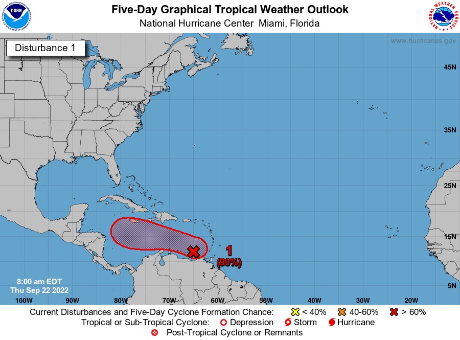 Comentó la zona de baja presión está interactuando con tierra en el norte de Sudamérica, por lo que su evolución es muy lenta, pronosticándose que al llegar al Caribe Central, se pueda formar una depresión tropical y con ello definir su trayectoria.