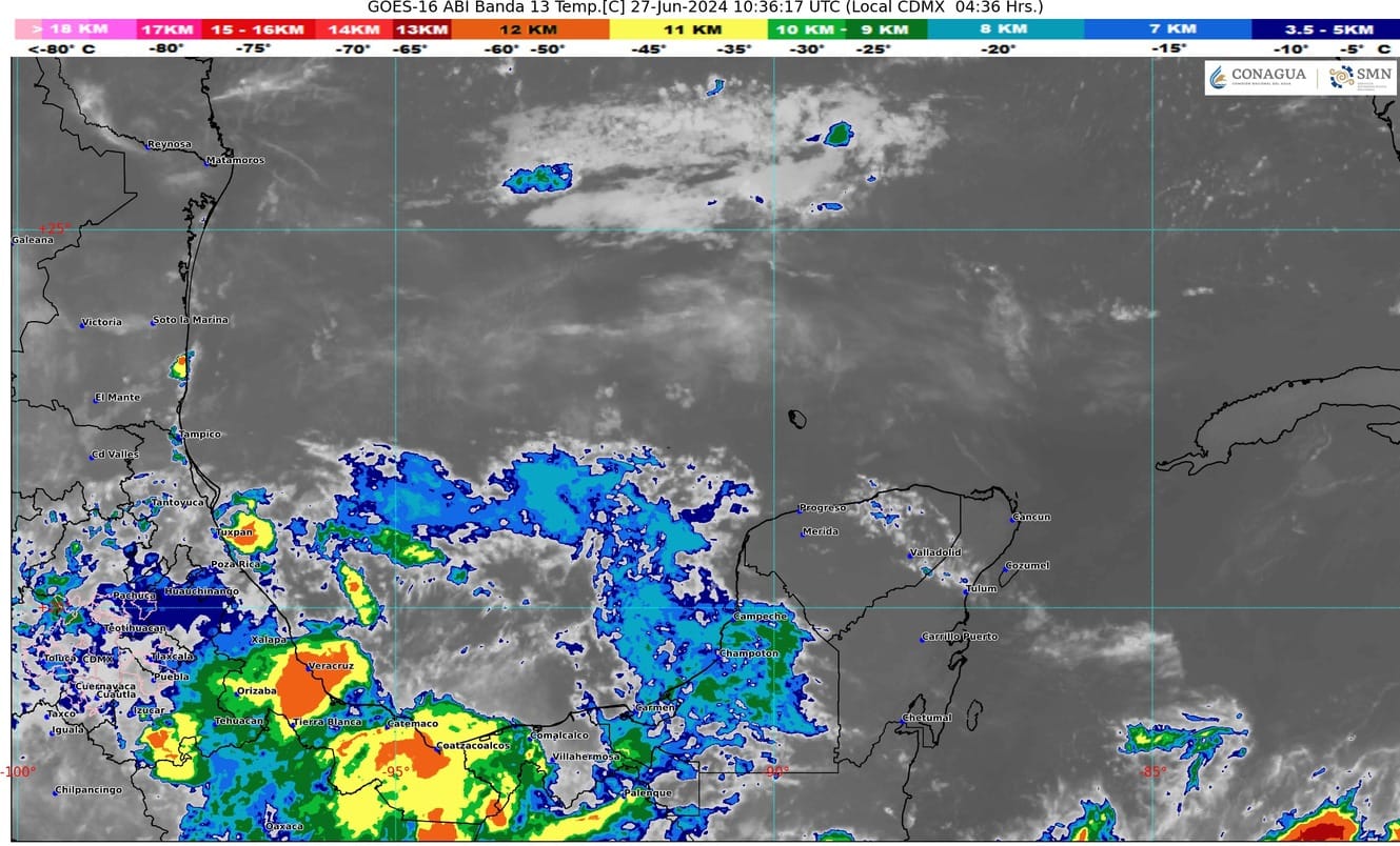 El desplazamiento de la onda tropical número cinco sobre la porción sur de la Península de Yucatán y la entrada de humedad proveniente del Mar Caribe provocarán un cielo parcialmente nublado con incrementos de nubosidad durante el día, además de lluvias con intervalos de chubascos y actividad eléctrica en algunas zonas del estado.