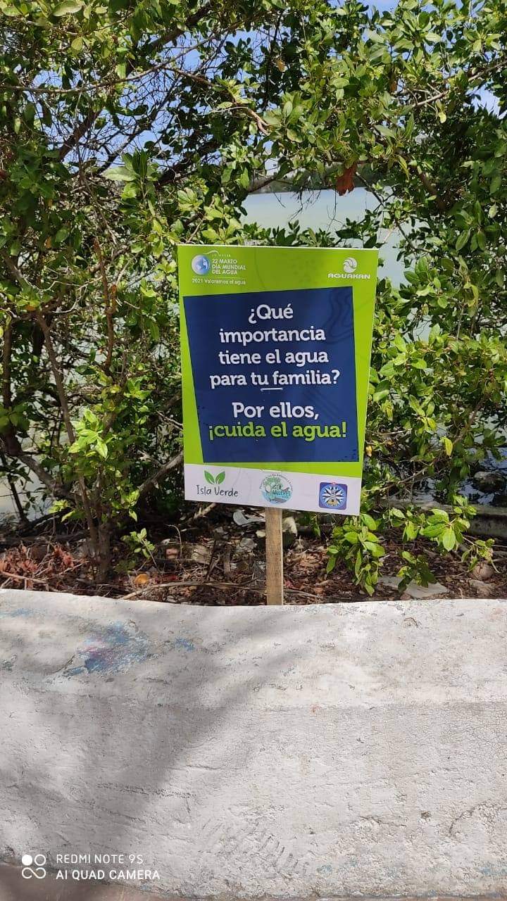 Isla Mujeres, Q. Roo, Miércoles 24 de Marzo de 2021, poderycrítica.- Como parte de las actividades conmemorativas del «Día Mundial del Agua» la dirección de Medio Ambiente y Ecología del Ayuntamiento de Isla Mujeres colocó 10 letreros en los alrededores de la Salina Grande, para fomentar el cuidado del vital líquido.