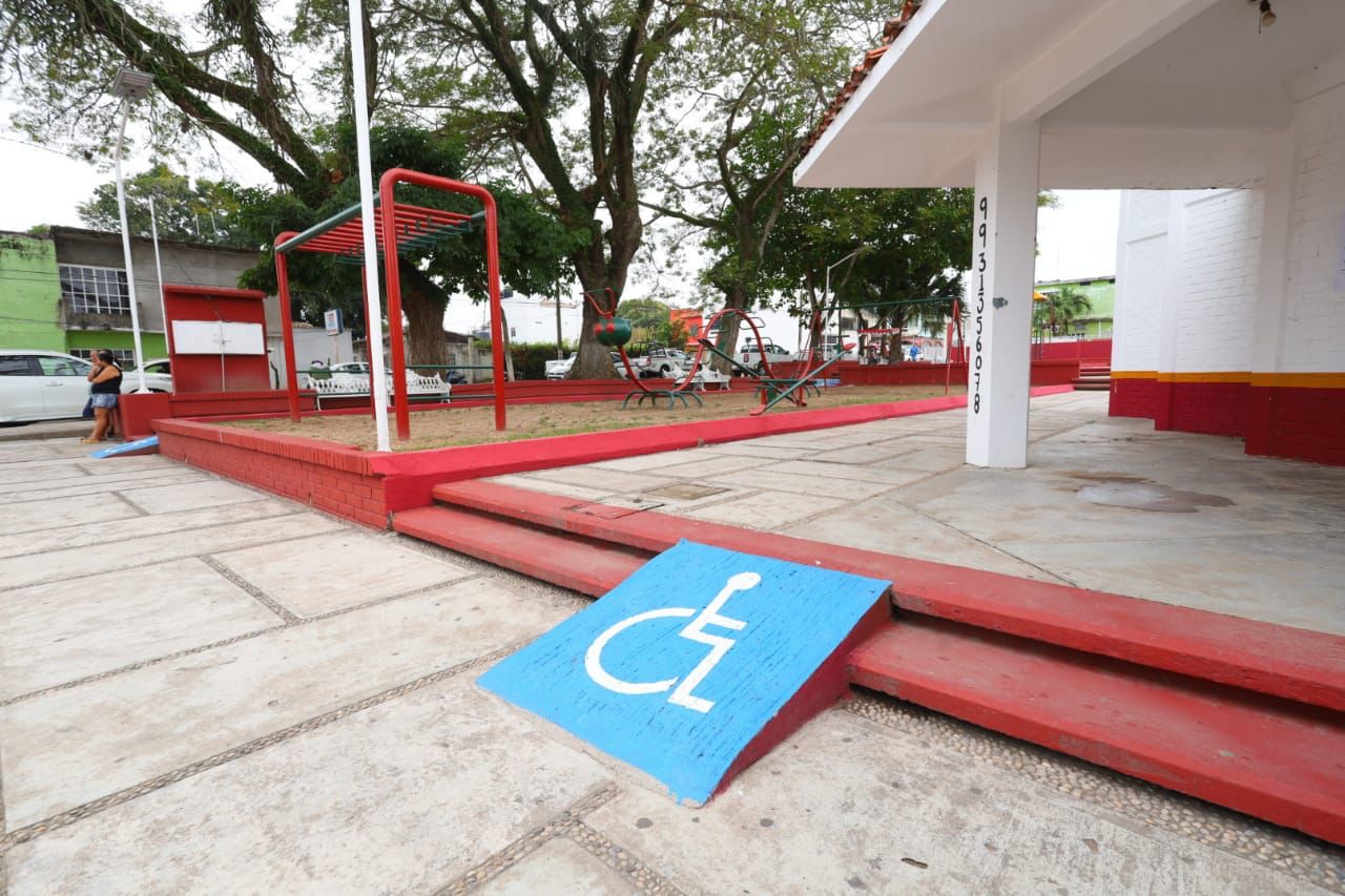 Además, se suministraron e instalaron luminarias con celda solar y batería; juego de módulo Valladolid, así como la elaboración de guarnición y banqueta perimetral en área de andador.