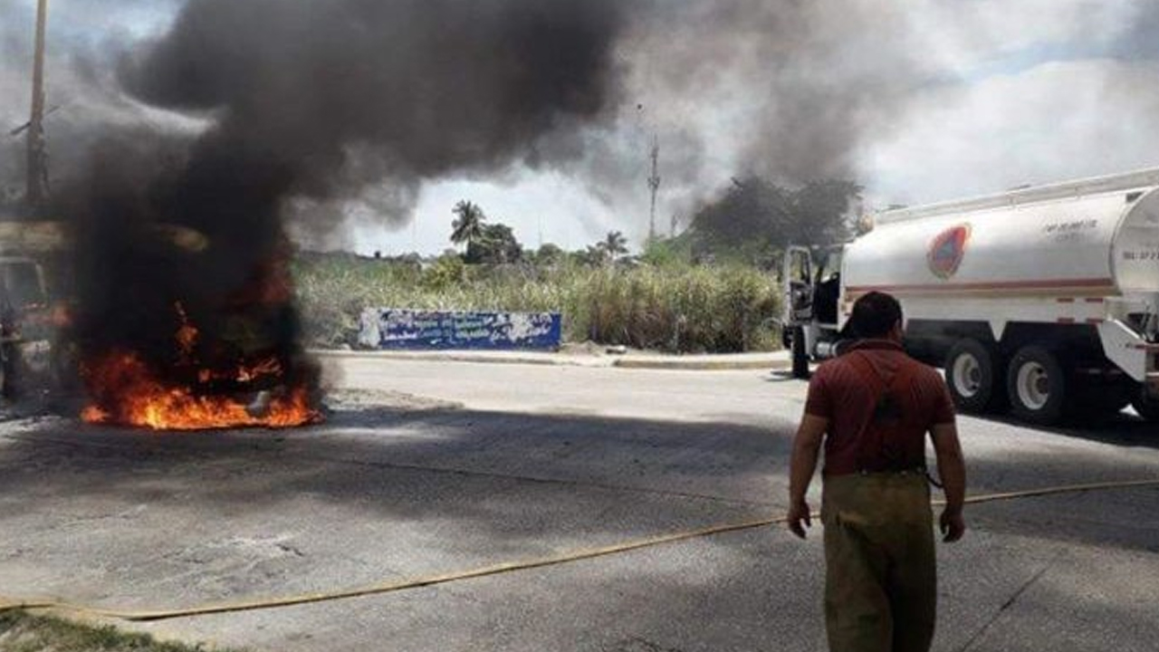 COMBI HACE CORTO CIRCUITO Y SE INCENDIA EN CARDENAS