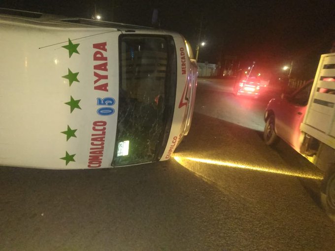 El accidente se dio a la altura del crucero conocido como ‘La Trampa del Diablo’. La unidad con número económico 05 Comalcalco-Ayapa registró una volcadura aunque se desconocen los motivos del accidente.
