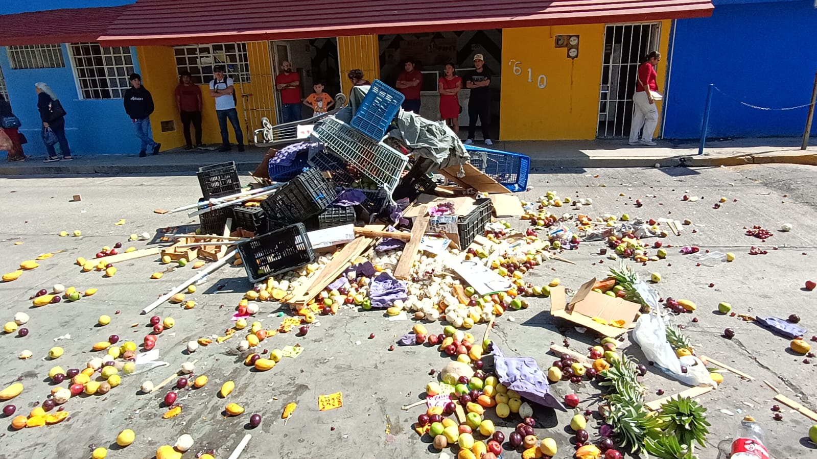 Los comerciantes señalaron que durante las acciones oficiales les fue asegurada una parte importante de su mercancía, lo que —afirman— les generó afectaciones económicas que en algunos casos superan los 30 mil pesos por persona. Ante esta situación, decidieron vaciar sobre la vía pública los productos que lograron conservar, principalmente frutas, con el fin de impedir la circulación vehicular y visibilizar su inconformidad.