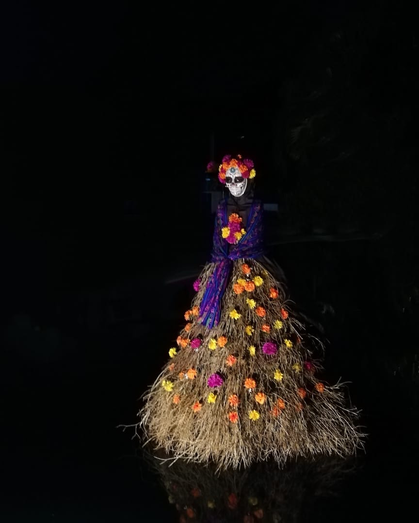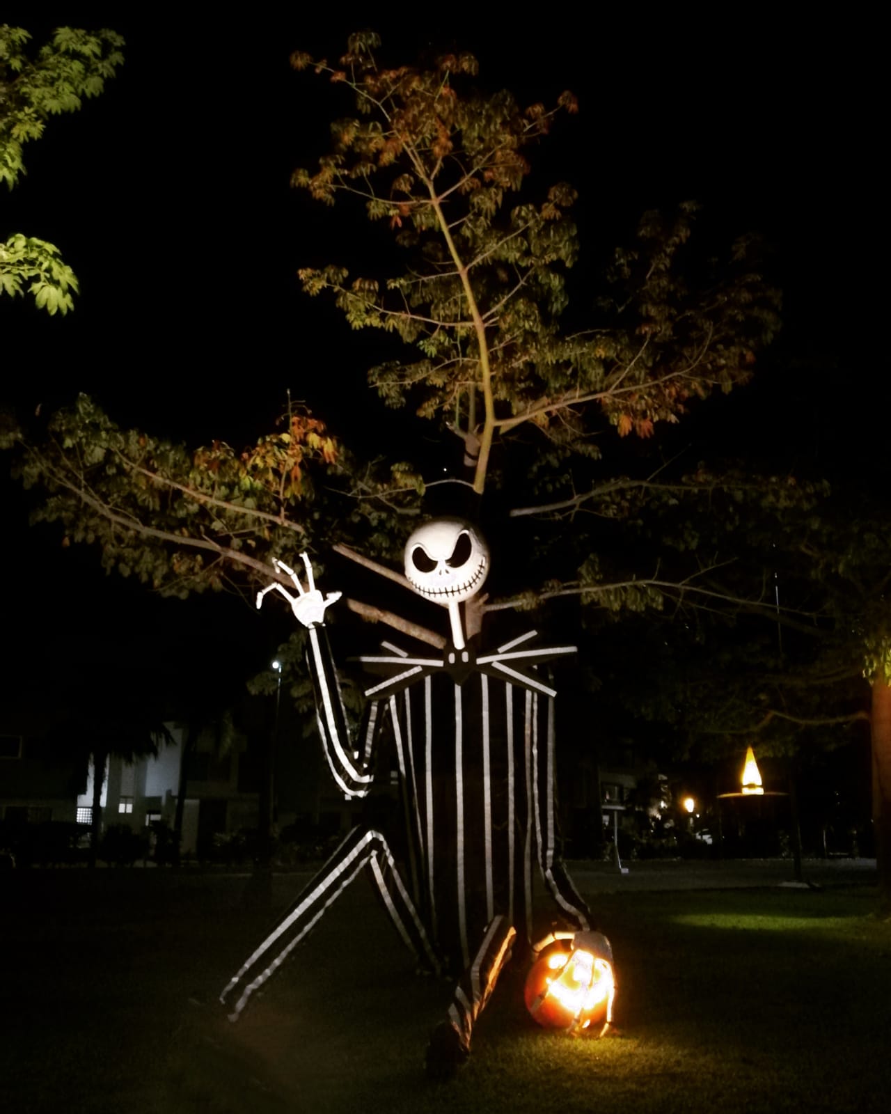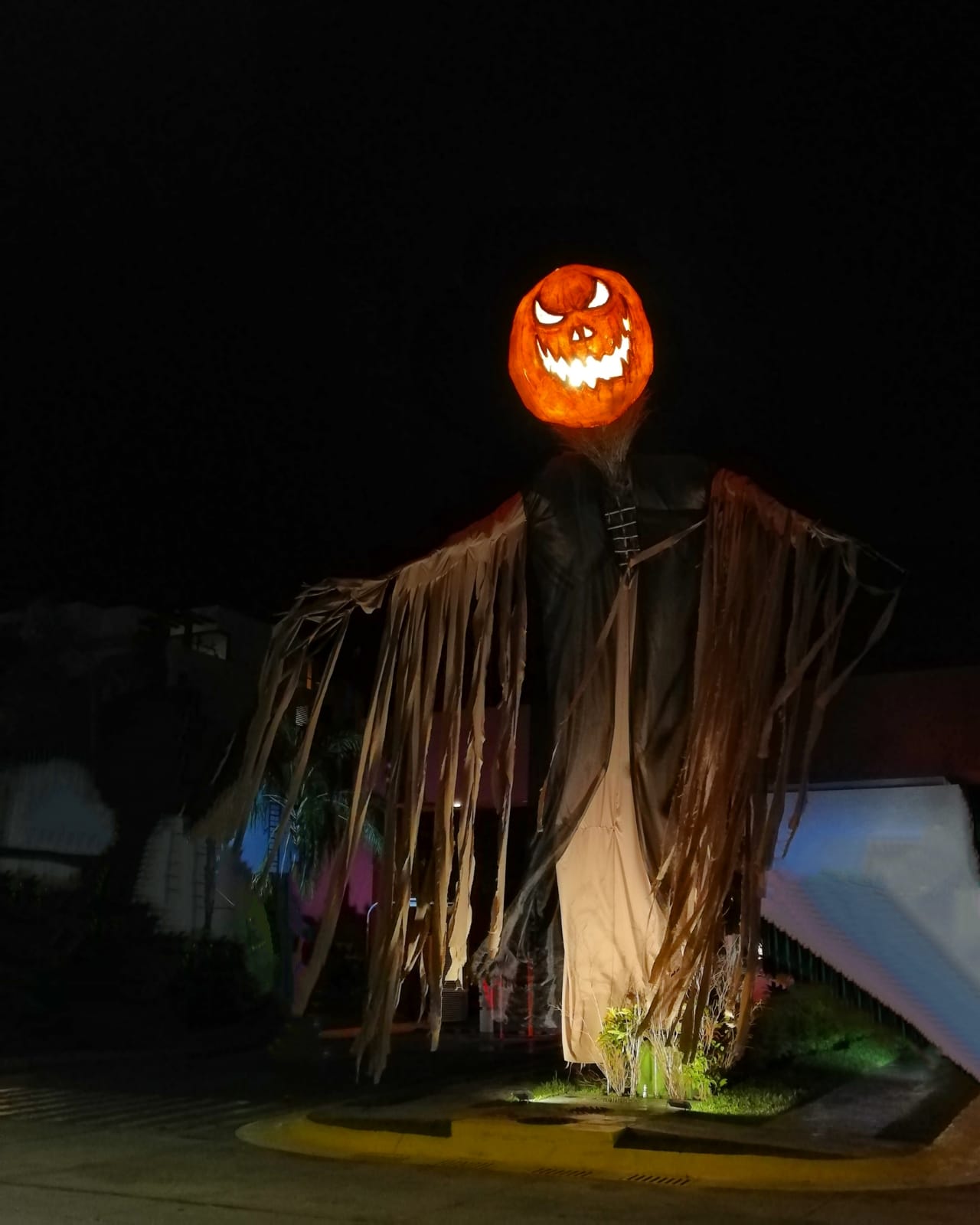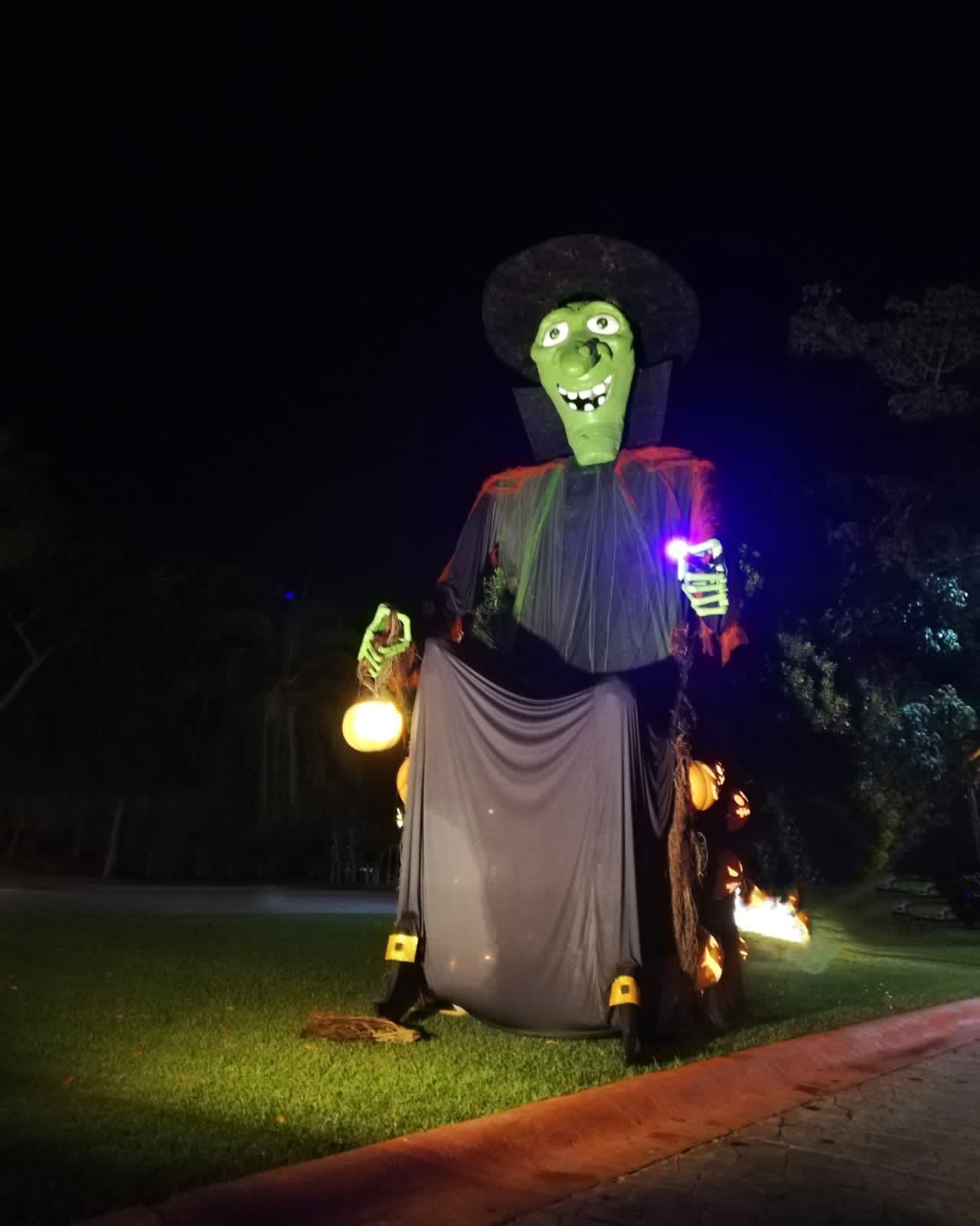 Tanto en la entrada como en diferentes puntos del fraccionamiento se montan escenarios alusivos a la “Noche de Brujas”.