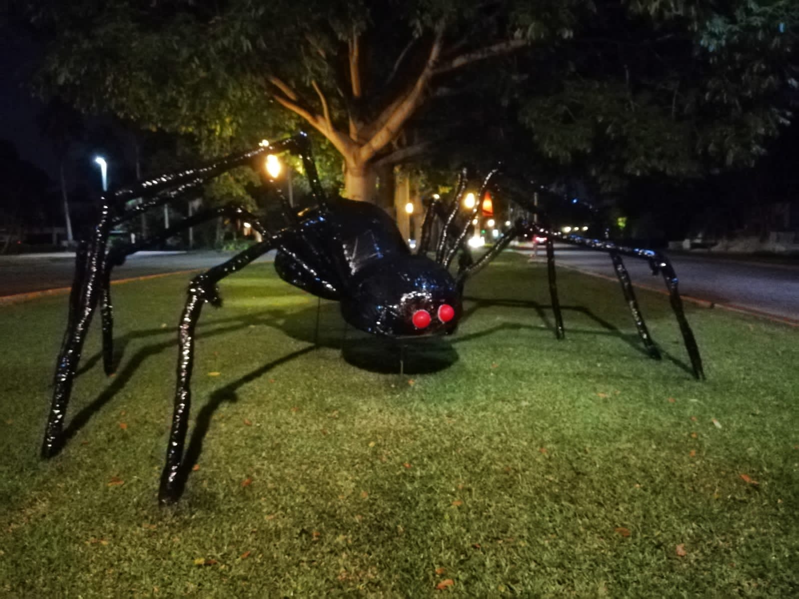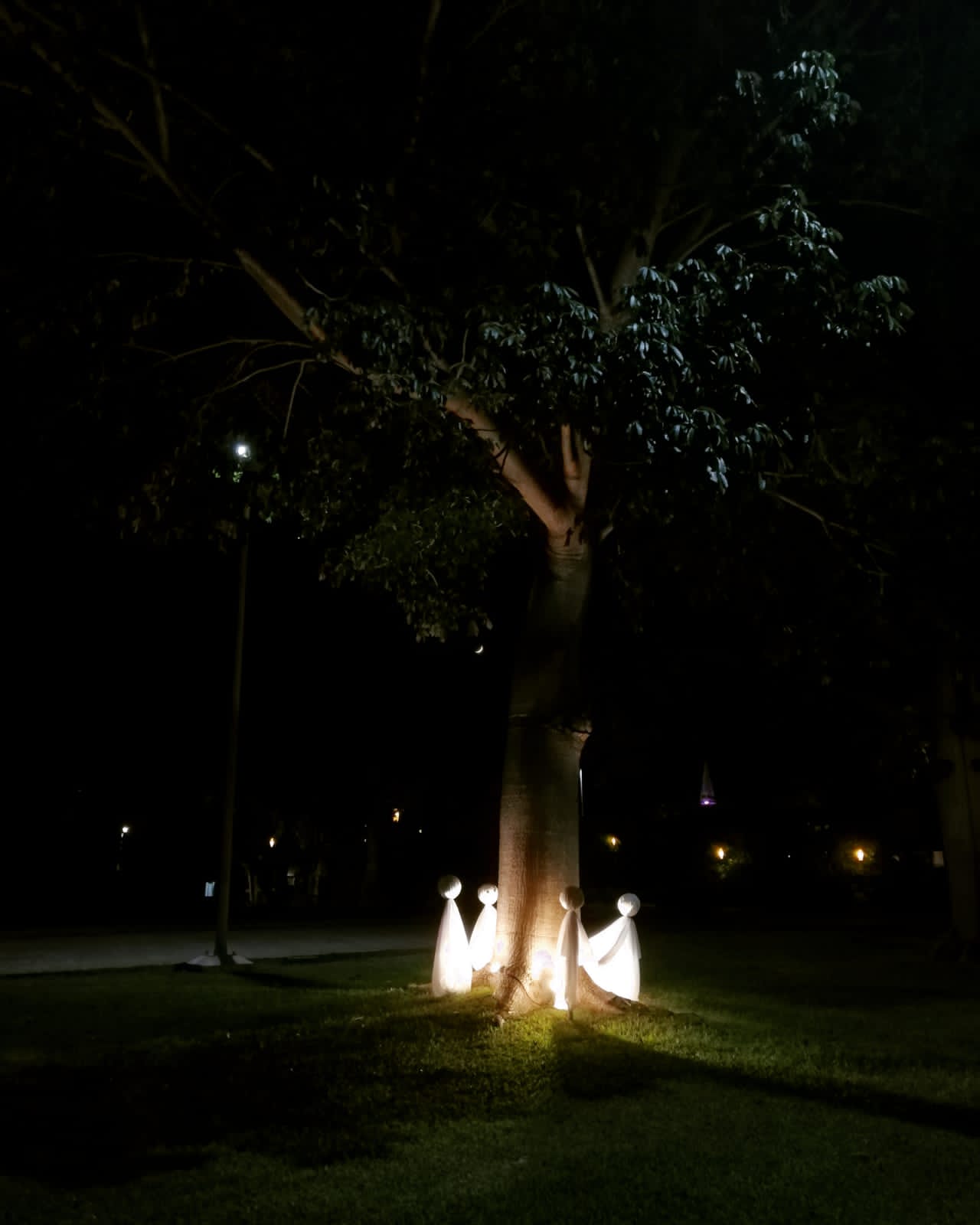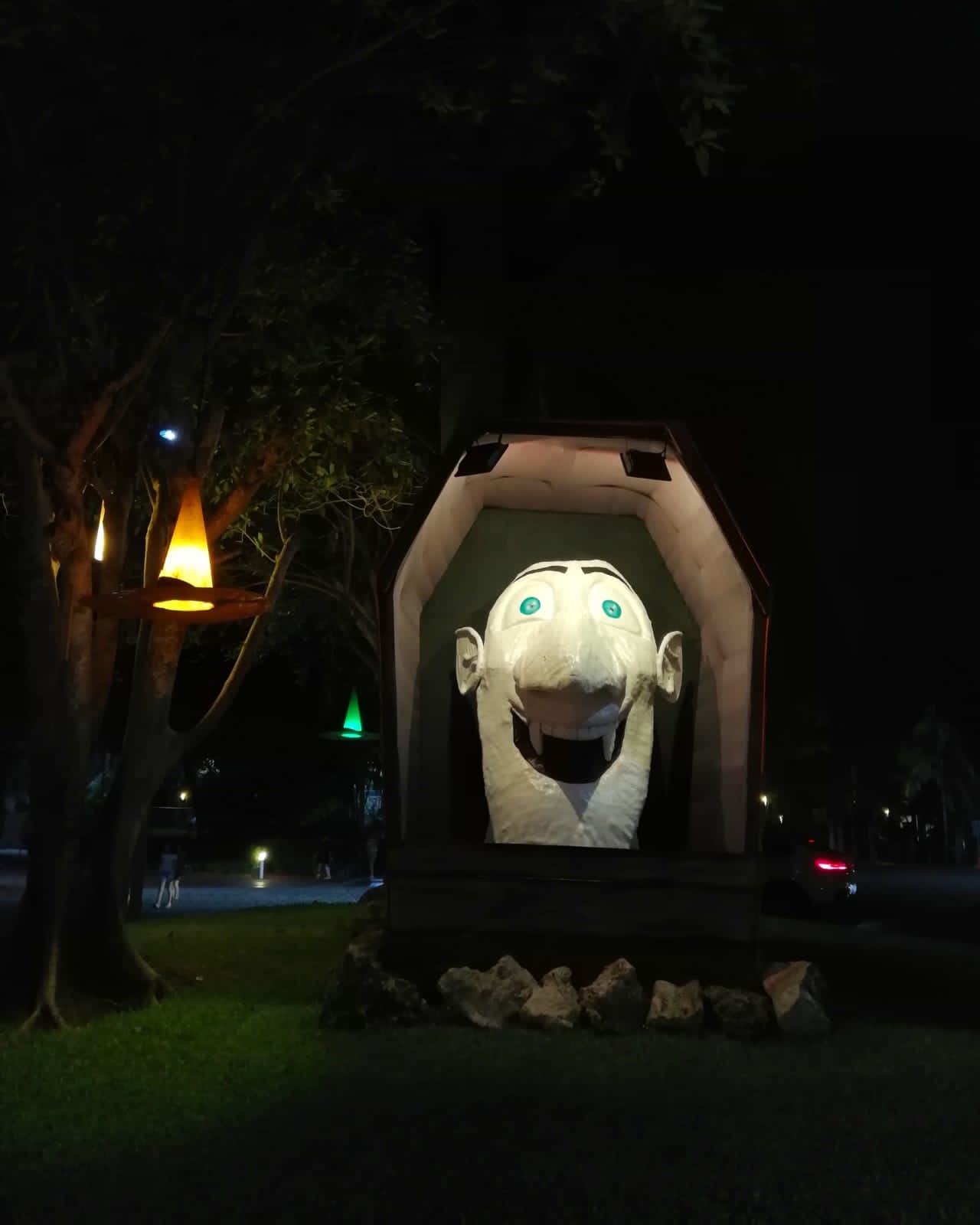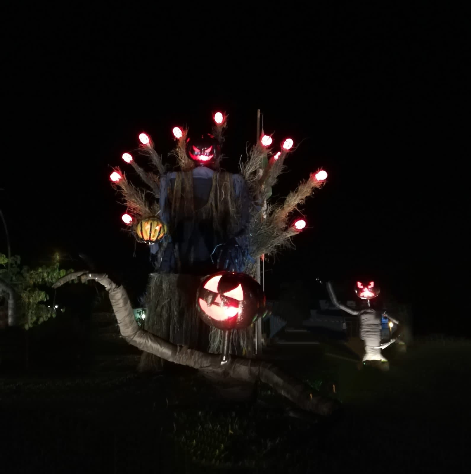 Tanto en la entrada como en diferentes puntos del fraccionamiento se montan escenarios alusivos a la “Noche de Brujas”.