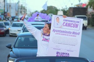 A unas horas, del cierre de campaña, Lupita Alcocer firmó un compromiso de campaña, ante el notario Público Benjamín de la Peña Ruiz de Chávez, que de ser favorecida con el voto ciudadano el próximo 6 de junio llevará el “Ayuntamiento Móvil” a las colonias y regiones de Cancún, pero además trabajará los 365 días del año.