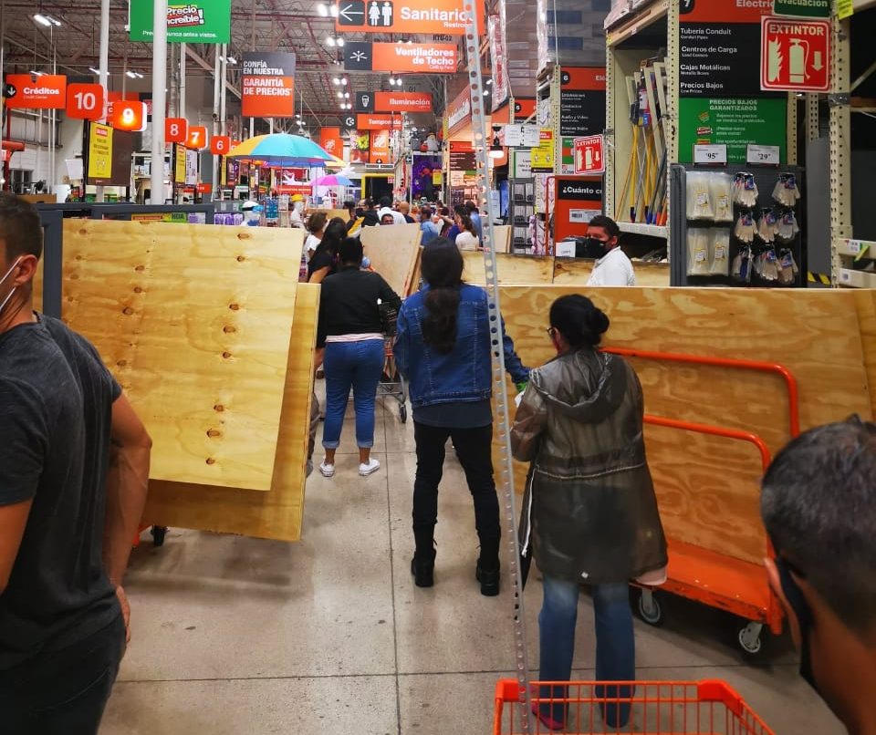 Cancún, Q. Roo, Lunes 05 de Octubre del 2020, poderycrítica.- Tras decretarse la alerta verde por la amenaza del huracán categoría uno denominado “Delta”, las principales carpinterías y en especial una cadena internacional importante de artículos para el hogar, fueron abarrotados por las compras de pánico para tratar de conseguir algo de triplay.