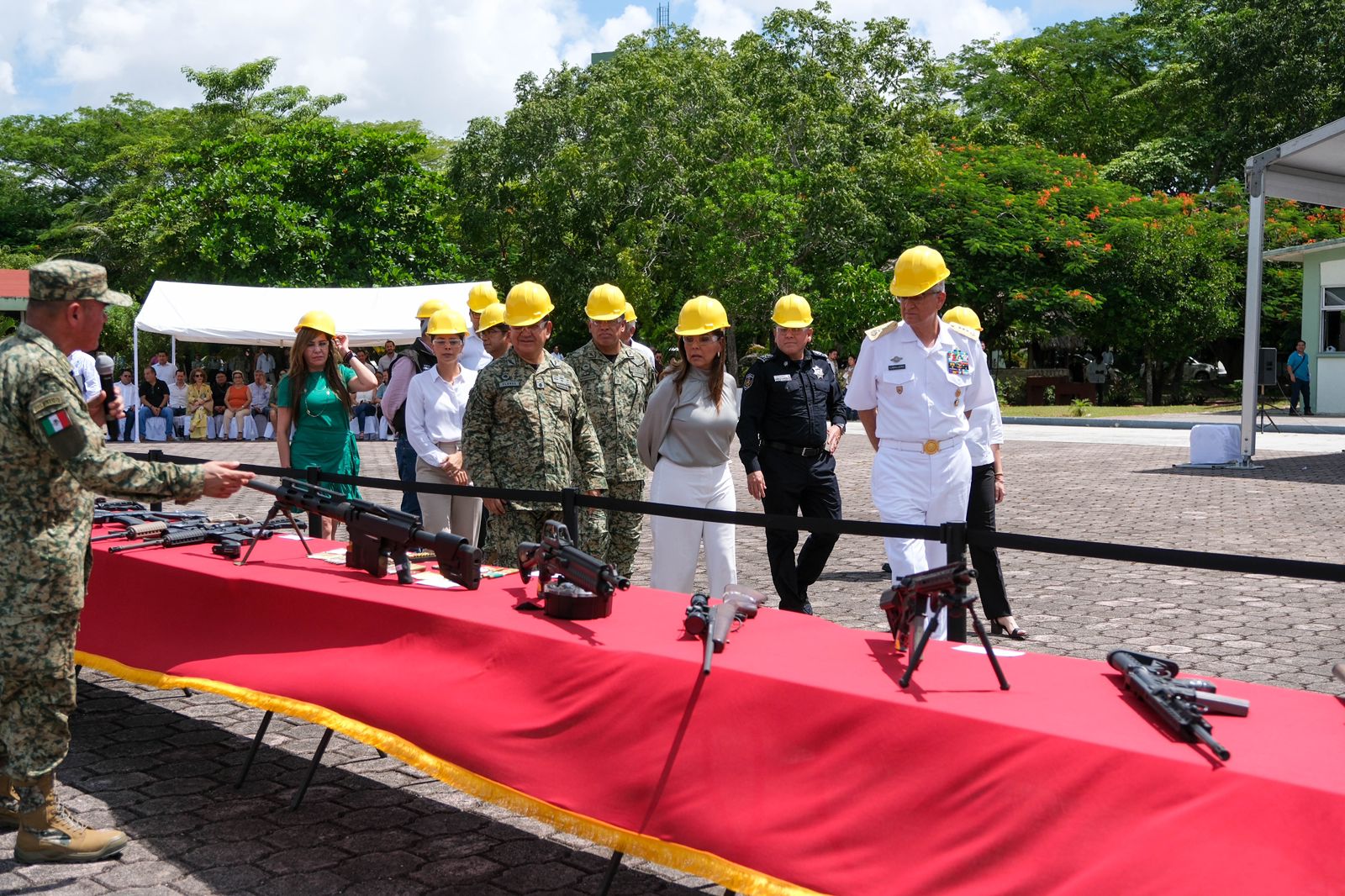PODER Y CRÍTICA | REDACCIÓN | Al inutilizar y destruir armas que de otra forma podrían usarse en contra de ciudadanas y ciudadanos avanzamos en la estrategia de construcción de paz, afirmó la gobernadora Mara Lezama Espinosa al atestiguar la ceremonia para la destrucción de armamento asegurado y puesto a disposición de la Secretaría de la Defensa Nacional (SEDENA), en las instalaciones de la Guarnición Militar de Cancún.