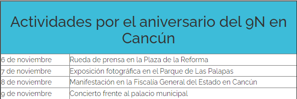 El 8 de noviembre convocaron a una manifestación, que empezará desde la glorieta de la avenida Kabah con López Portillo hacia las instalaciones de la Fiscalía en Cancún, a las 5:00 de la tarde.