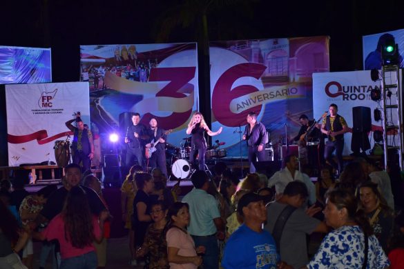 PODER Y CRÍTICA | REDACCIÓN | Con una nutrida asistencia e inmejorable ambiente, cientos de personas disfrutaron de la velada musical en la noche de baile “Una Cana al Aire”, que esta ocasión tuvo como escenario el parque Benito Juárez donde continuó la celebración del 36 Aniversario de la Fundación de Parques y Museos de Cozumel (FPMC), con la presentación del grupo yucateco “Yerbabuena”.