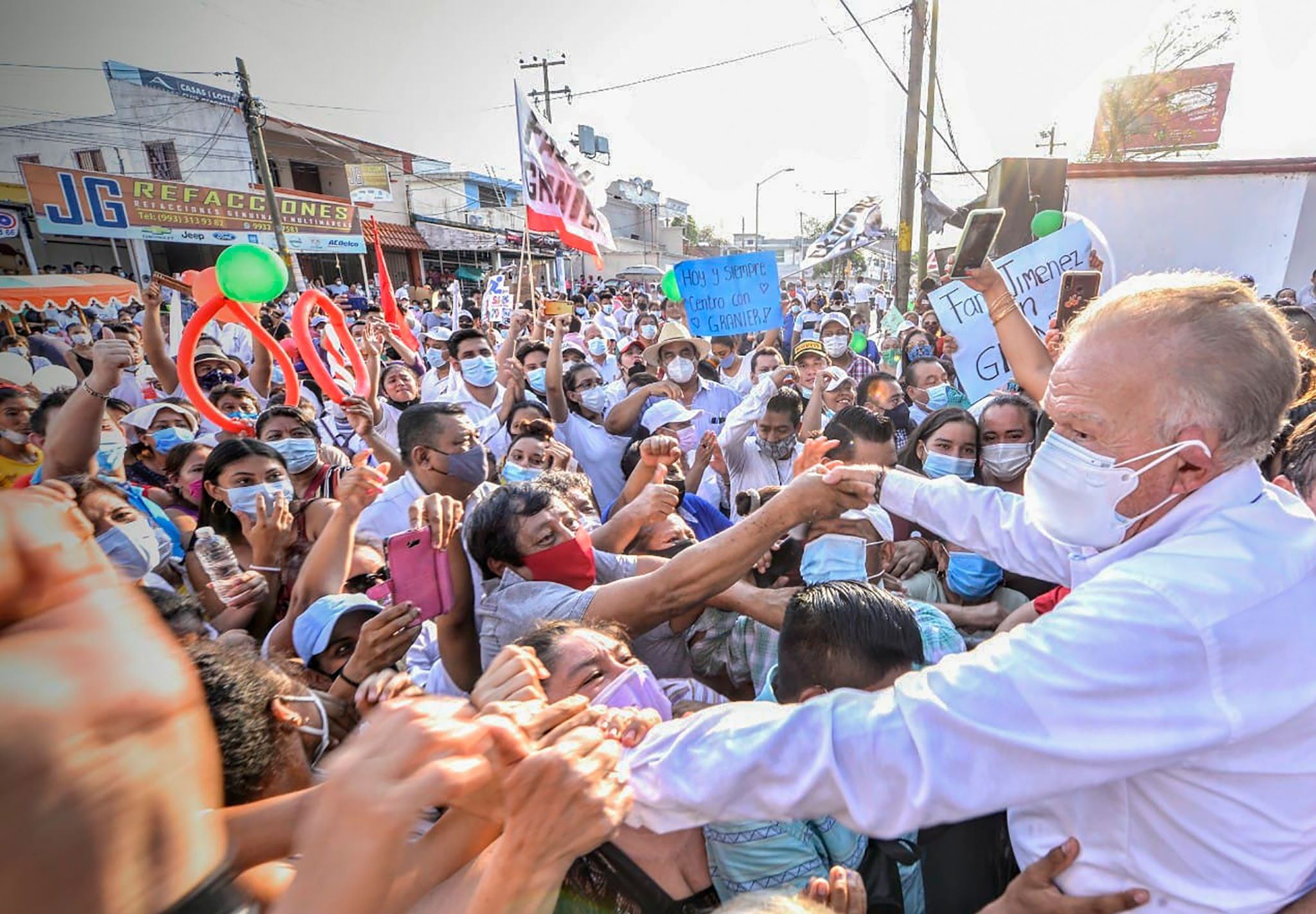 Tabasco, 19 mayo; poderycrítica.-Sin respetar las medidas sanitarias que se requieren llevar a cabo para evitar el contagio del virus Covid-19, el candidato del PRI por la alcaldía de Centro, Andrés Granier Melo, convocó a una reunión masiva en la ciudad de Villahermosa para recibir al dirigente nacional del PRI, Alejandro Moreno.