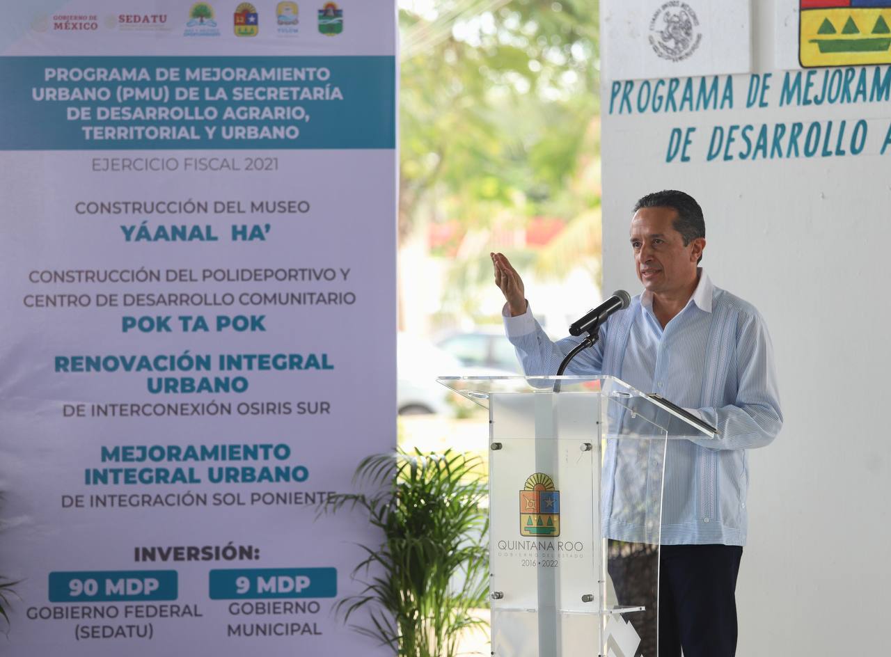A través del “Programa de Mejoramiento Urbano”, se beneficiarán a 33 mil 374 habitantes de Tulum, con la construcción de obras como el museo Yáanal Ha’, el polideportivo y el centro de desarrollo comunitario Pok Ta Pok.