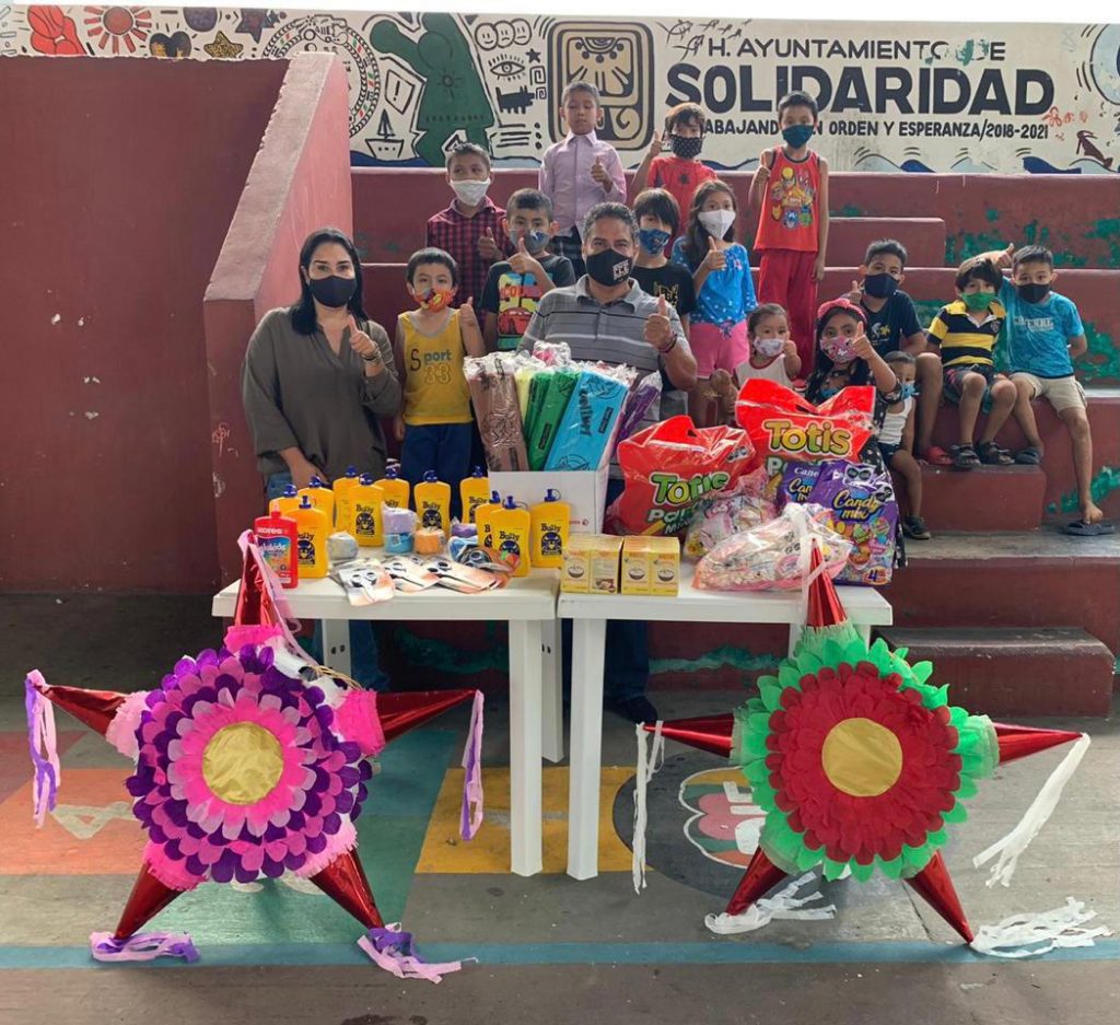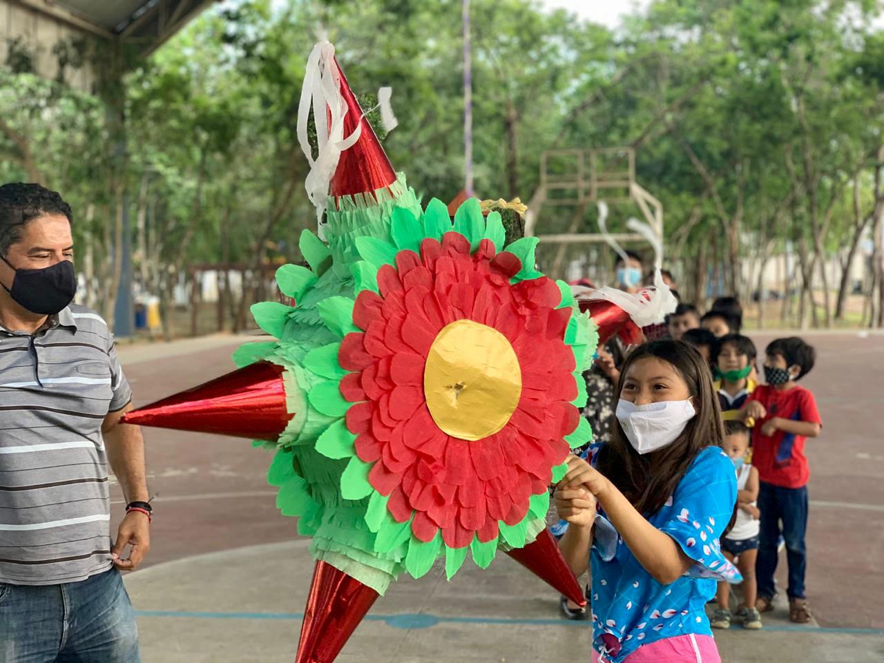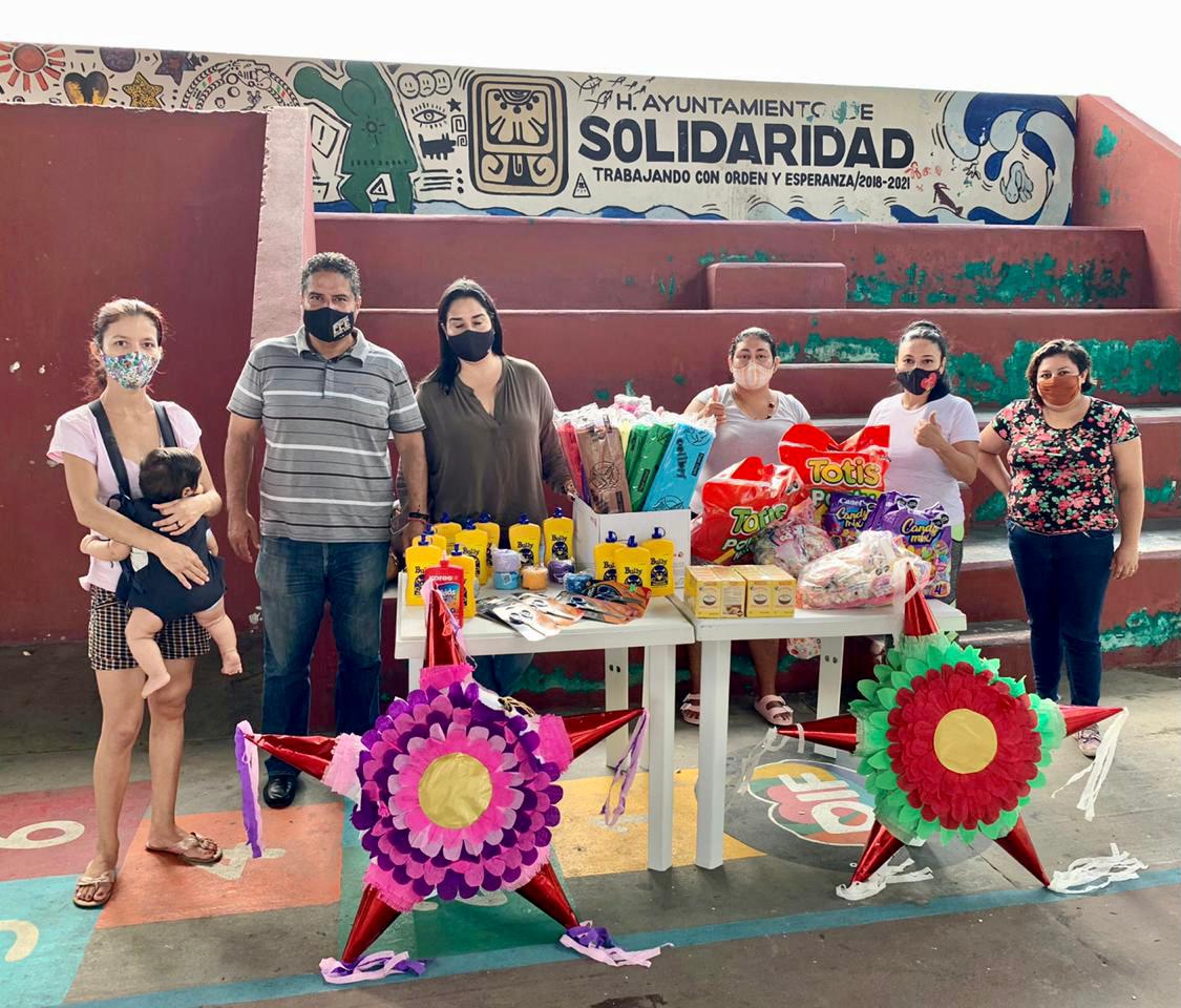 Solidaridad, Q. Roo, Miércoles 23 de Diciembre de 2020, poderycrítica.- Niñas y niños de escasos recursos que viven cerca del Primer Parque del Fraccionamiento Villas del Sol, festejaron en grande, con pizzas y piñatas, una tradicional posada navideña.