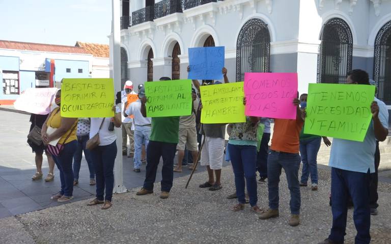 CON PROTESTA EN PALACIO DE GOBIERNO AMBULANTES DE OCUILTZAPOTLÁN PIDEN SE LES PERMITA VOLVER A TRABAJAR