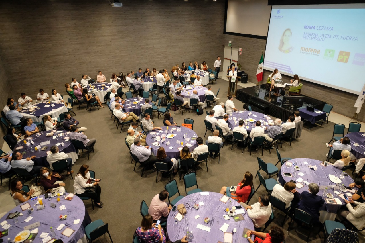 En la reunión Mara Lezama expuso la necesidad de un nuevo Pacto Económico y Social para Quintana Roo, apuntó que el orden y reglamentación serán fundamentales contra la corrupción y respondió a inquietudes sobre temas como movilidad, vivienda, seguridad, educación, medio ambiente y turismo.
