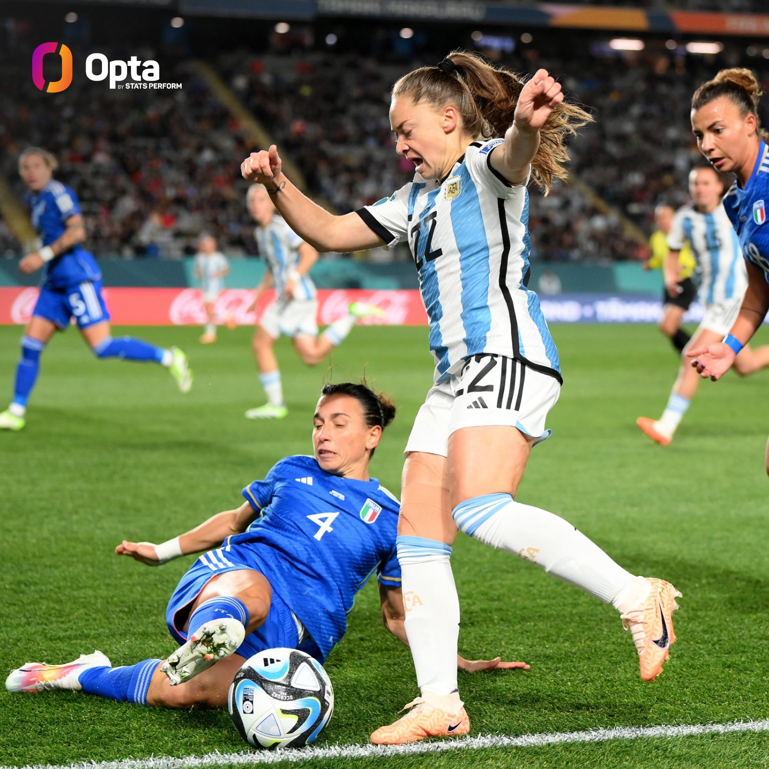 El partido por el Grupo G, que también integran Suecia y Sudáfrica, se jugó en el Eden Park de Auckland, Nueva Zelanda, ante un bullicioso público, en especial de argentinos que no pararon de cantar para alentar a sus jugadoras.