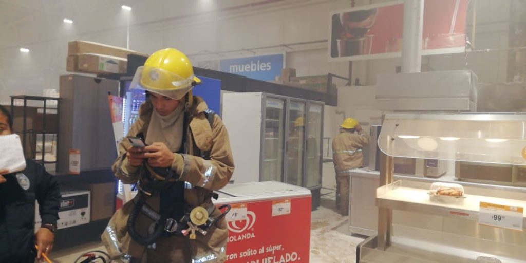 Al parecer se trató de un corto circuito en el área de cocina de Chedraui, lo que activó el código rojo de emergencia.