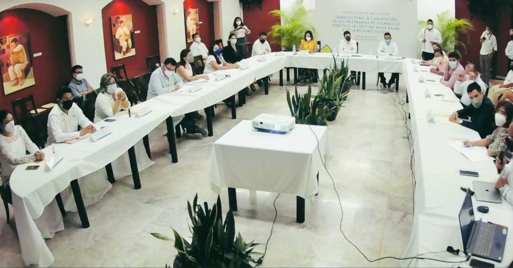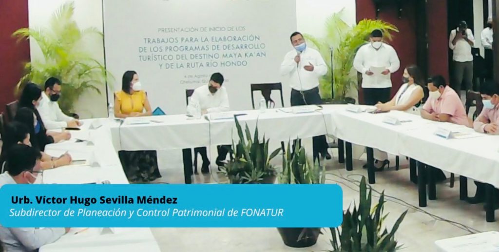 Chetumal, Q. Roo, miércoles 04 de agosto de 2021, poderycrítica.- En la capital del estado se realizó una reunión entre las autoridades de Felipe Carrillo Puerto, Othón P. Blanco, SEDETUR y FONATUR para la presentación de inicio de los trabajos para la elaboración de los programas de desarrollo del Tren Maya y Ruta Río Hondo, destacó el subdirector de Planeación y Control Patrimonial de FONATUR Víctor Hugo Sevilla Méndez.