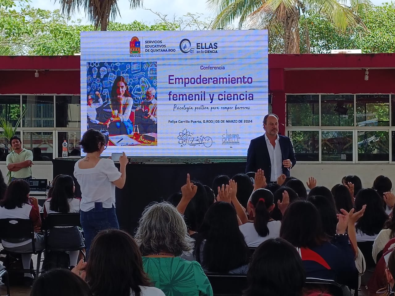 PODER Y CRÍTICA | REDACCIÓN | Como parte del Programa Ellas en la Ciencia, durante tres días se llevó a cabo la conferencia “Empoderamiento femenil y ciencia”, dirigida a 600 estudiantes de media superior del CBTIS No. 111 de Cancún, CBTIS No. 72 de Felipe Carrillo Puerto y Plantel Chetumal Dos del Colegio de Bachilleres.