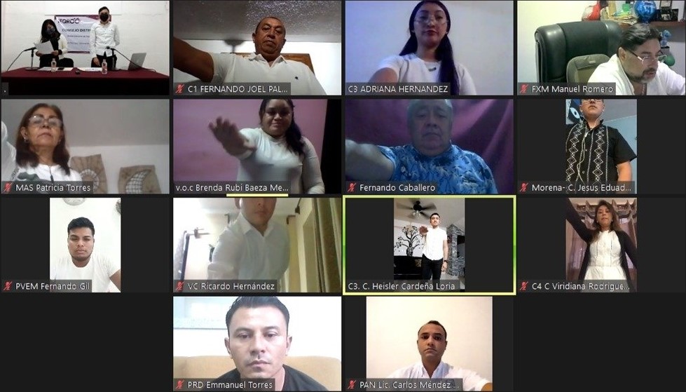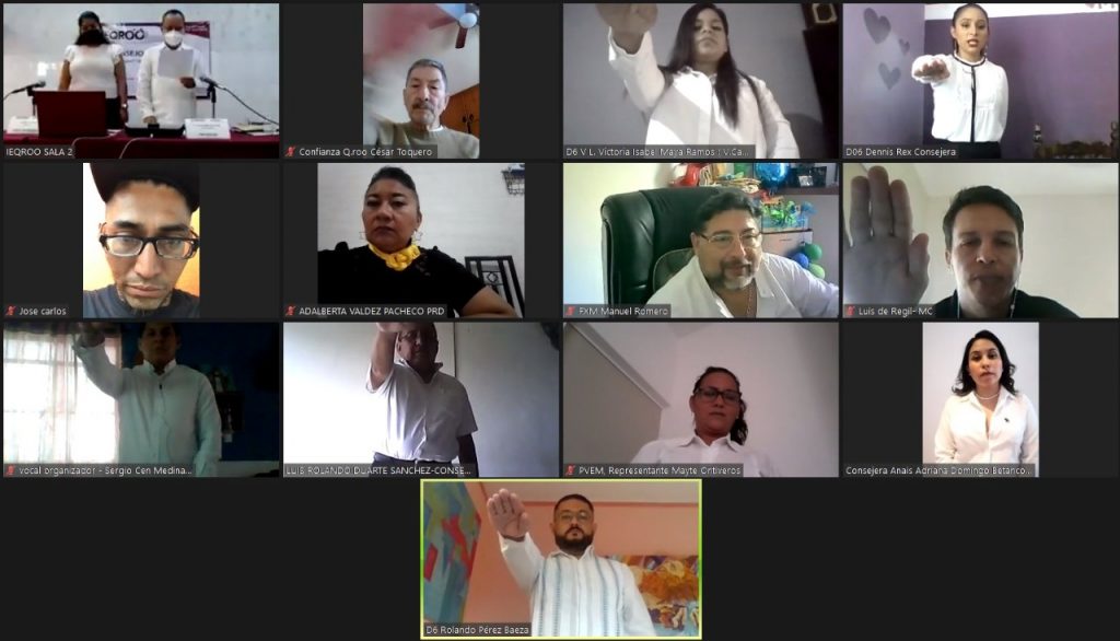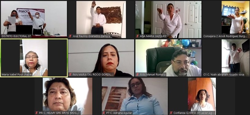 En cada uno de los actos protocolarios estuvieron presentes de manera virtual, las y los integrantes del Consejo General; la Consejera Presidenta Mayra San Román Carrillo Medina, las Consejeras Claudia Ávila Graham, Maisie Lorena Contreras Briceño, María Salomé Medina Montaño, y los Consejeros Adrián Amilcar Sauri Manzanilla y Juan César Hernández Cruz. Durante sus intervenciones desearon a cada uno de los integrantes; éxito en la encomienda que hoy asumen, así como anteponer los valores morales, éticos y profesionales, así como a conducirse siempre apegados al marco legal electoral.