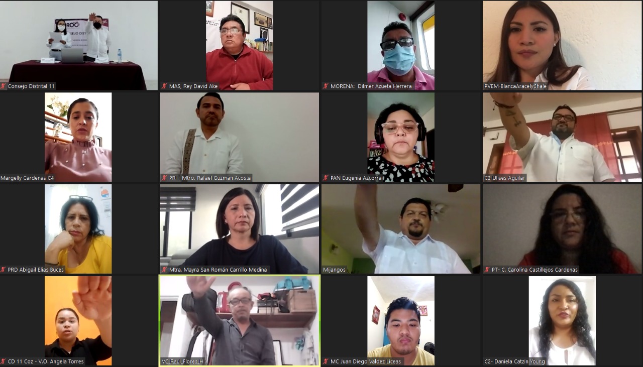 En cada uno de los actos protocolarios estuvieron presentes de manera virtual, las y los integrantes del Consejo General; la Consejera Presidenta Mayra San Román Carrillo Medina, las Consejeras Claudia Ávila Graham, Maisie Lorena Contreras Briceño, María Salomé Medina Montaño, y los Consejeros Adrián Amilcar Sauri Manzanilla y Juan César Hernández Cruz. Durante sus intervenciones desearon a cada uno de los integrantes; éxito en la encomienda que hoy asumen, así como anteponer los valores morales, éticos y profesionales, así como a conducirse siempre apegados al marco legal electoral.