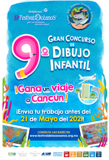 Cancún, Q. Roo, miércoles 05 de mayo de 2021, poderycrítica.- El 9° Festival de los Océanos (#FestOcéanos) organizado por Delphinus, se acerca y una de sus actividades principales, es el ya tradicional Concurso de Dibujo Infantil en el que estudiantes de primaria y secundaria de Quintana Roo, el resto de México y a nivel Internacional podrán participar para mostrar su talento y sensibilidad para conservar el océano y sus recursos.