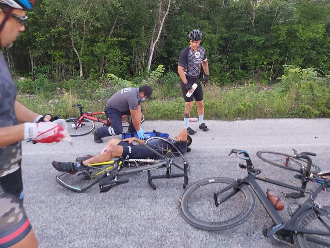Cancún, Q. Roo, Lunes 08 de Junio de 2020, poderycrítica.- Un conductor arrolló a un grupo de ciclistas que circulaban sobre la avenida Huayacán de Cancún.
