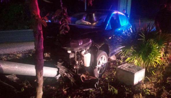 Playa del Carmen, Q. Roo, lunes 08 de noviembre de 2021, poderycrítica.- De frente, contra un poste de alumbrado público se estampó el conductor de una camioneta particular cuando circulaba esta madrugada en el tramo carretero El Tintal.