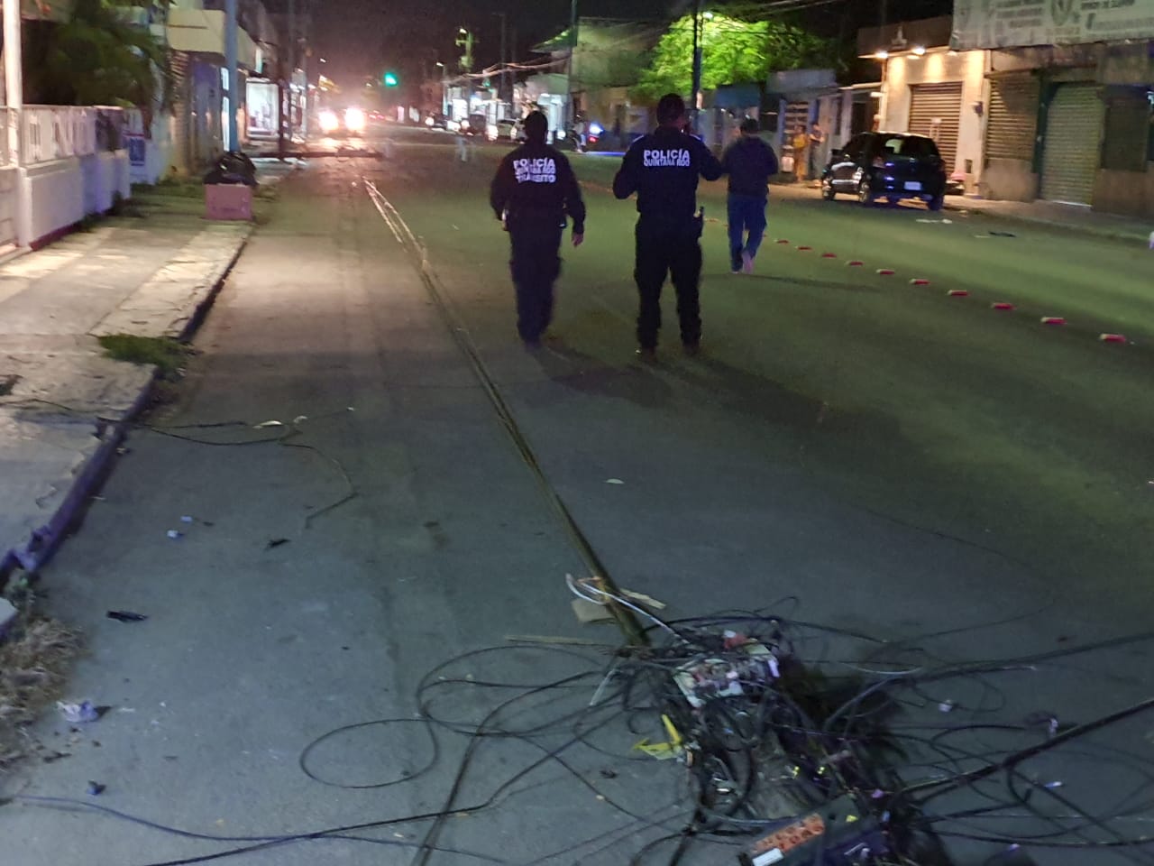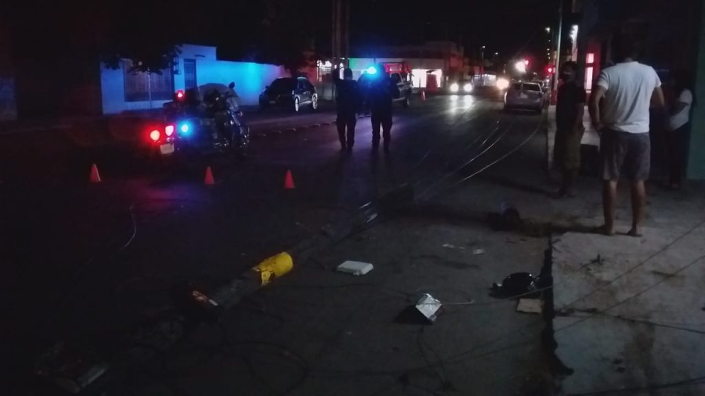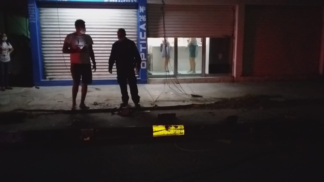 Chetumal, Q. Roo, jueves 11 de marzo de 2021, poderycrítica.- Un conductor en estado de ebriedad derribó tres postes del servicio telefónico de Teléfonos de México (Telmex) en la colonia Centro de la capital del Estado.