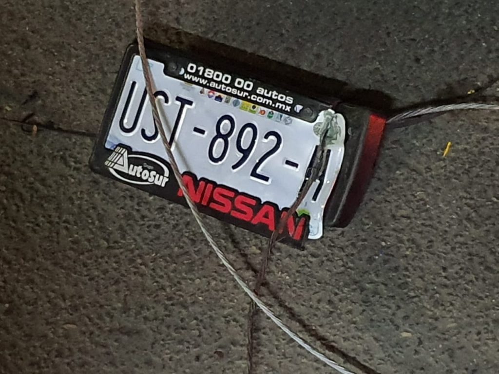 Al sitio arribaron elementos de Tránsito para intentar ubicar la unidad sin resultados positivos; sin embargo, en el sitio localizaron la matrícula de la unidad marcada con el número UST-982-H.