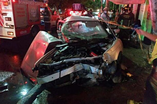 PODER Y CRÍTICA | La presunta imprudencia del conductor de un auto tipo Tsuru, con placas locales UVT66F, ocasionó un accidente de tránsito durante la madrugada de este sábado con saldo de dos personas muertas y cuatro heridas.
