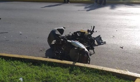 Como consecuencia del fuerte impacto, la moto terminó prácticamente despedazada y el cuerpo del motociclista quedó tirado sobre la carpeta de rodamiento, sin vida.