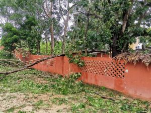 Lo más común, señaló, es la caída de árboles, algunos en las bardas perimetrales, sean de block o metálicas. También hay daños en lámparas y en algunas antenas de internet inalámbrico.