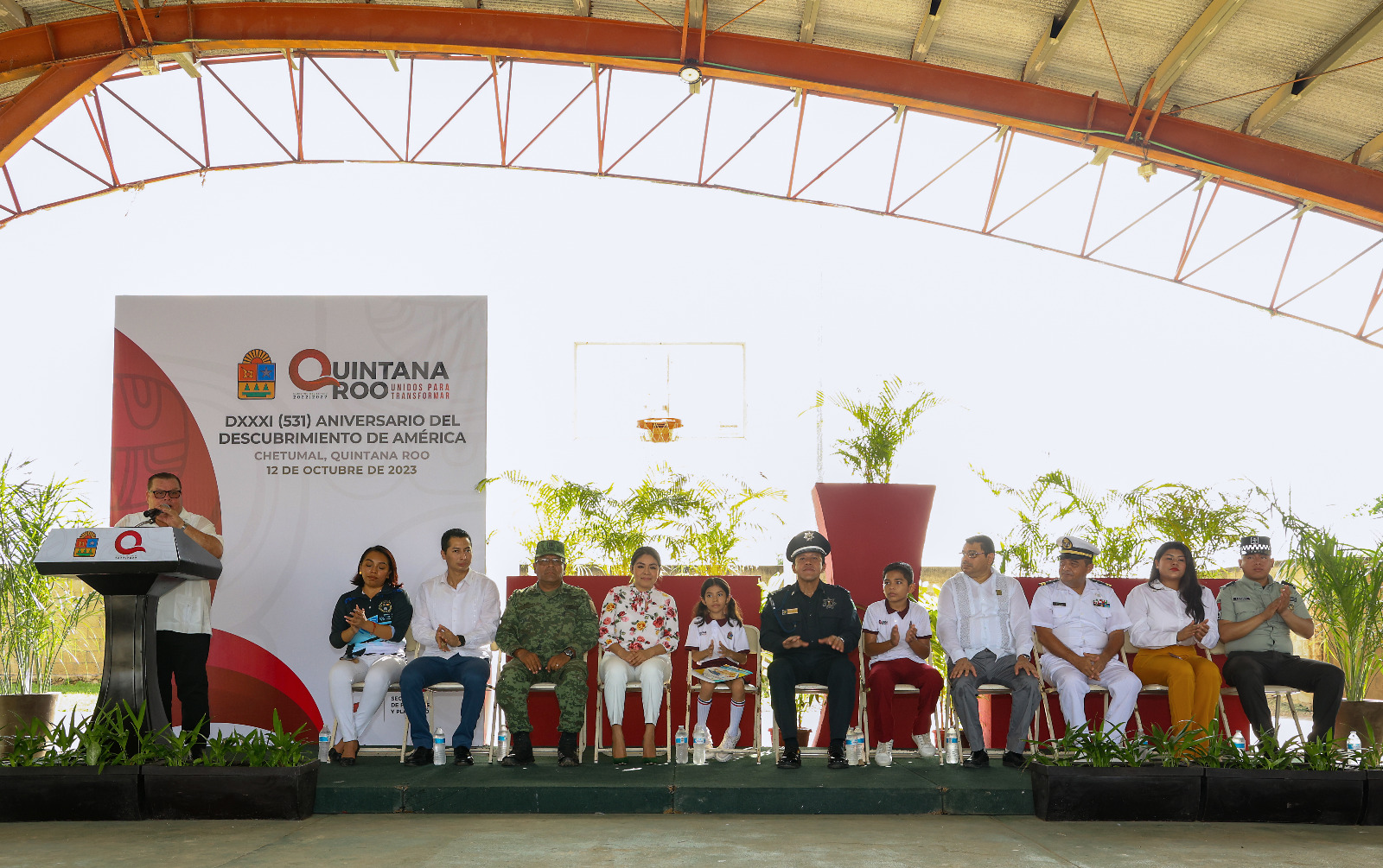 PODER Y CRÍTICA | REDACCIÓN | El Gobierno de Quintana Roo conmemoró el 531 aniversario del Descubrimiento de América con una ceremonia cívica realizada por la Secretaría de Finanzas y Planeación en la escuela primaria Kohunlich de la colonia Solidaridad en Chetumal.