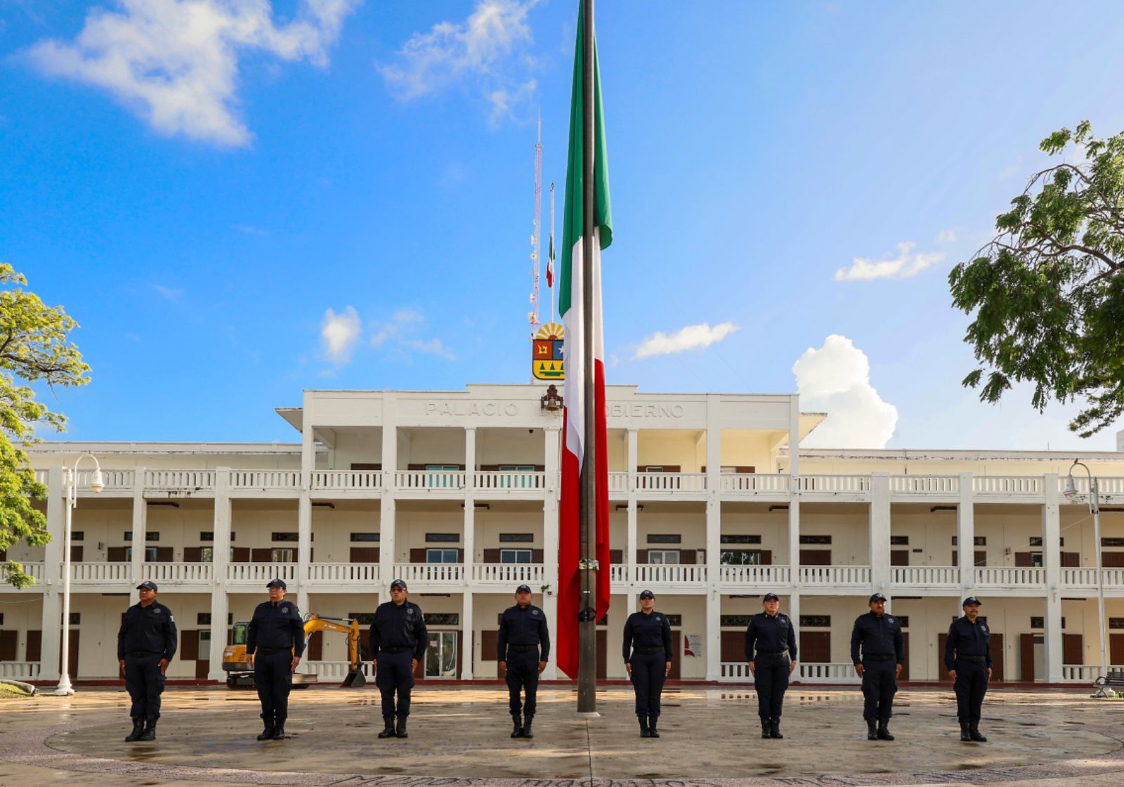 Antes de realizar la ceremonia organizada por la Secretaría de Finanzas y Planeación (SEFIPLAN), elementos de la Secretaría de Seguridad Ciudadana, llevaron a cabo el izamiento de la Bandera Nacional, a media asta, en la plaza cívica situada frente al Palacio de Gobierno.