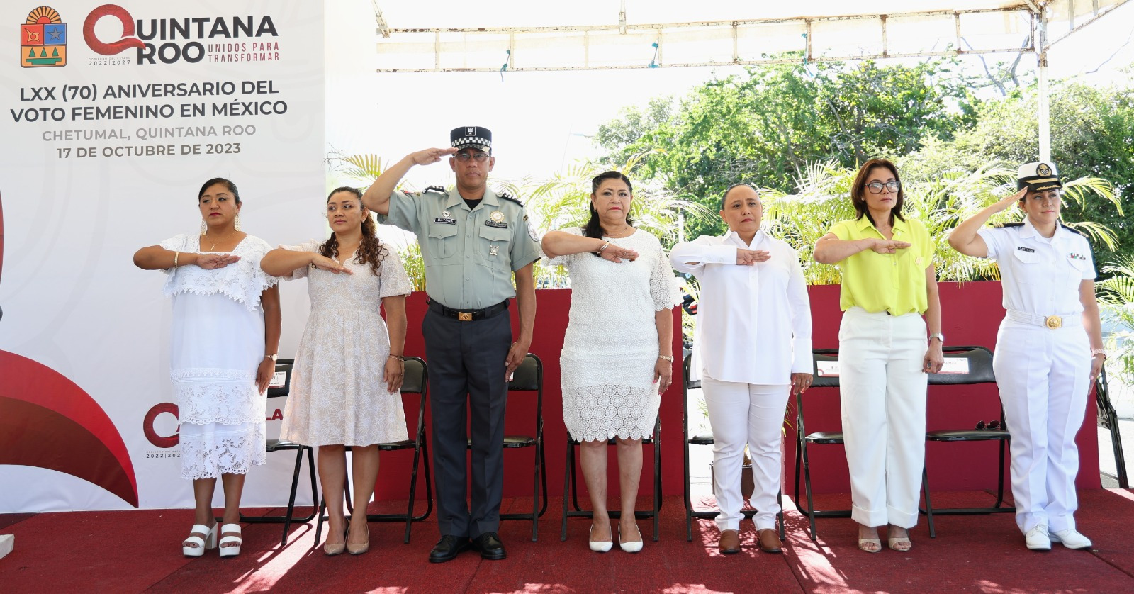 PODER Y CRÍTICA | REDACCIÓN | Para reconocer los derechos políticos de las mujeres, la Secretaría de Finanzas y Planeación (SEFIPLAN) realizó la ceremonia cívica para conmemorar el 70 aniversario del Voto Femenino en México, ante el monumento a la Mujer Quintanarroense situado en el Boulevard Bahía.