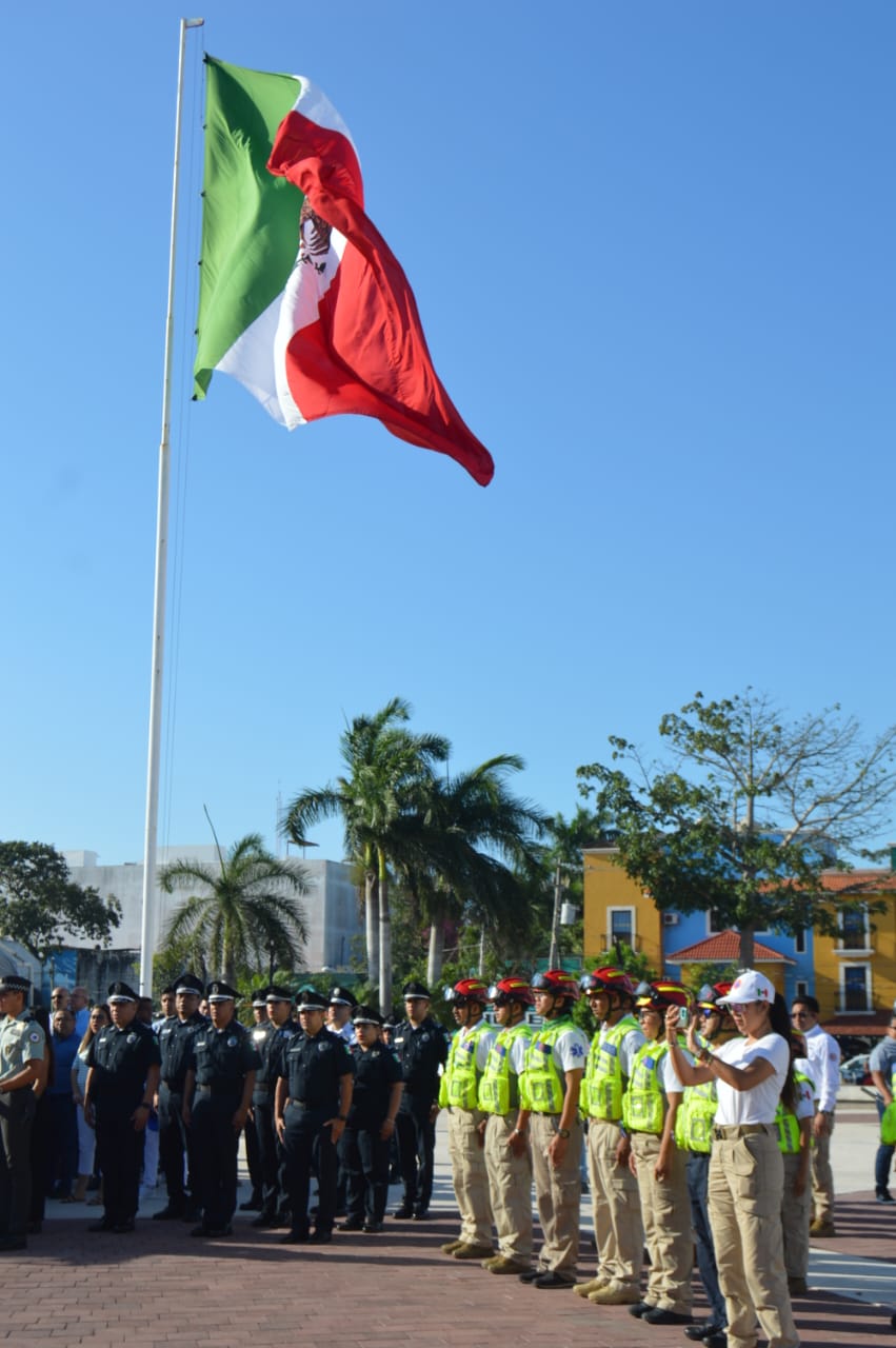 En la ceremonia cívica se entonaron los himnos a Quintana Roo y Nacional Mexicano, y se rindieron honores a la Bandera Nacional que este día ondeó en todo lo alto del asta de la Explanada 28 de julio.