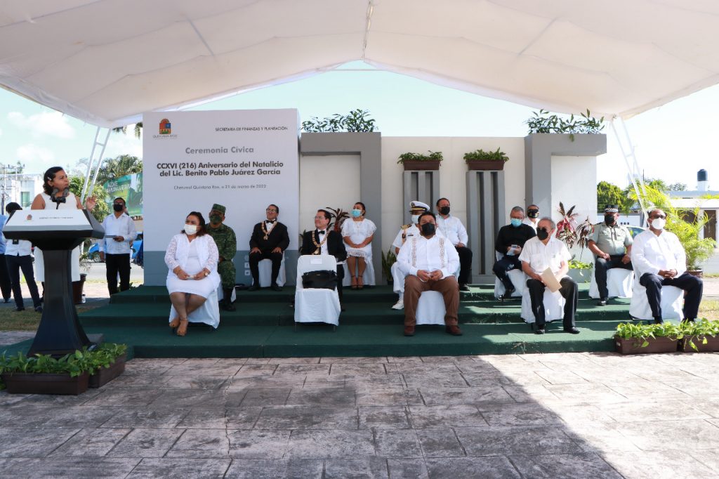 PODER Y CRÍTICA | REDACCIÓN | Se conmemoró en Chetumal, ciudad capital de Quintana Roo, el 216 Aniversario del Natalicio del Lic. Benito Pablo Juárez García, quien nació el 21 de marzo de 1806 en el pueblo San Pablo Guelatao, en el Estado de Oaxaca, descendiente de indígenas zapotecas.