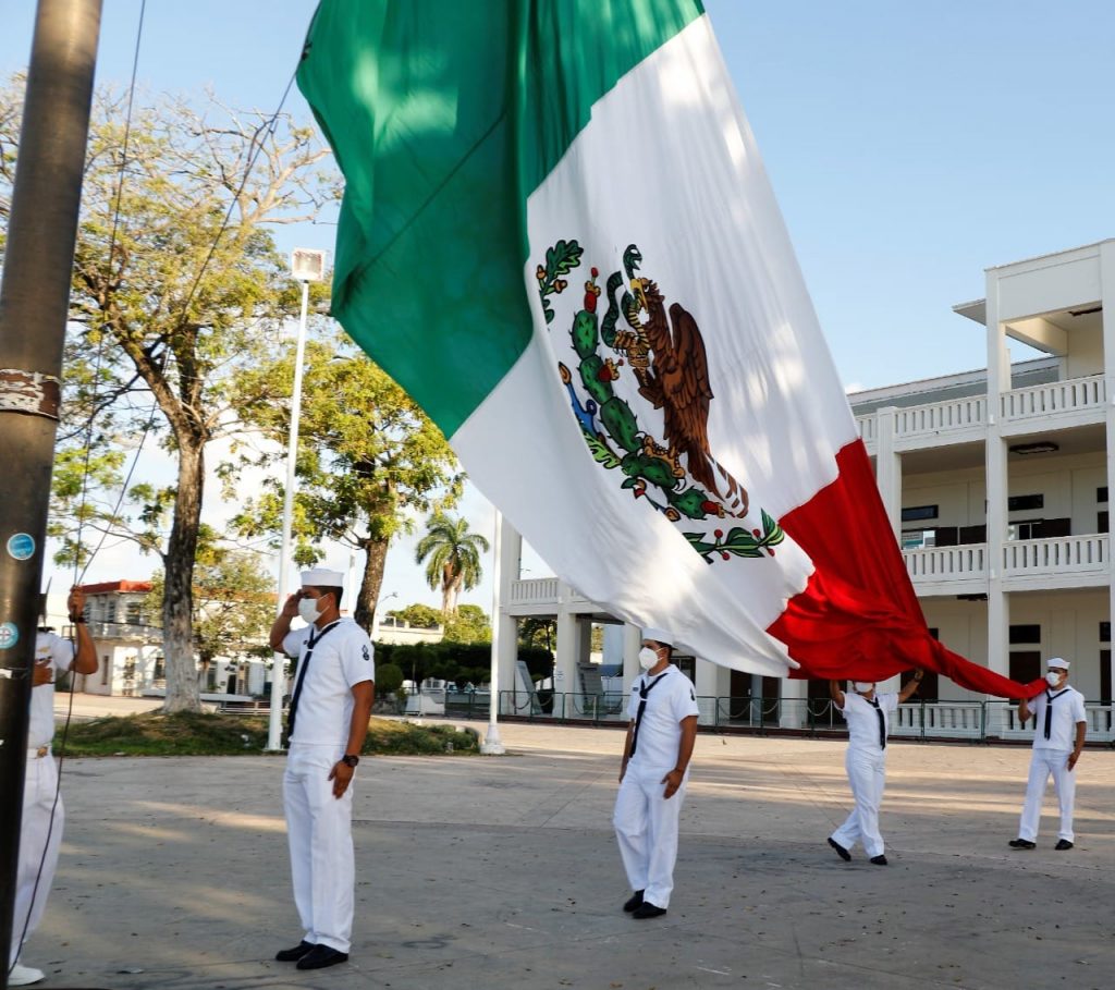 Como parte de la conmemoración del Aniversario de Benito Juárez, a temprana hora se llevó a cabo el izamiento a toda asta de la Bandera Nacional Mexicana en la Plaza Cívica situada frente a Palacio de Gobierno con el apoyo de elementos de la Décimo Primera Zona Naval.