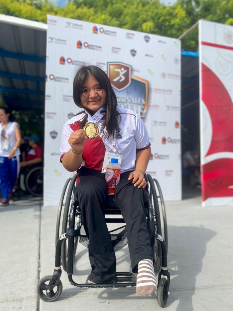 PODER Y CRÍTICA | REDACCIÓN | La delegación de Quintana Roo tuvo un dorado cierre en la disciplina de paranatación en los Paranacionales CONADE 2023, luego de que la chetumaleña Goretti del Carmen Sosa Gamboa conquistó la primera medalla de oro para la entidad y con ello entregar la séptima presea general, esto durante la actividad del último día de competencias en la Alberca Olímpica de Cancún.
