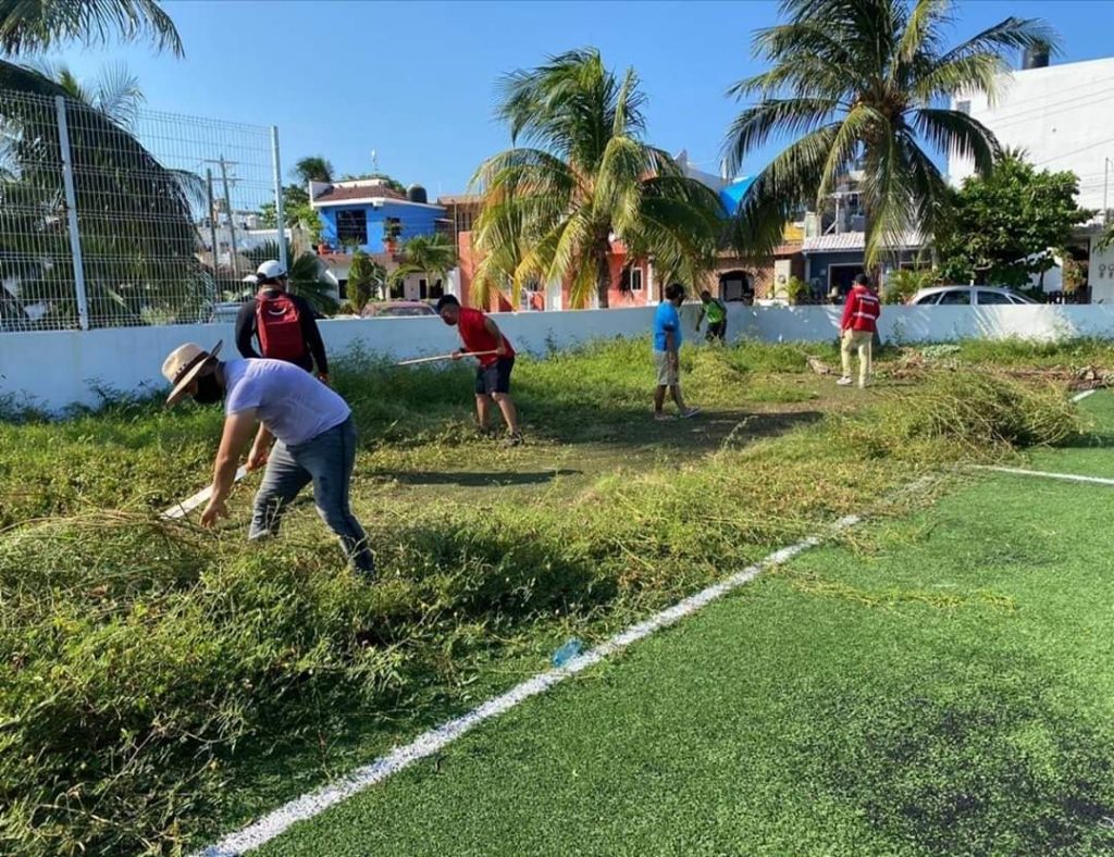 Ante la situación sanitaria del Covid-19, los espacios deportivos en el municipio se mantienen cerrados para el público en general, como lo marca el semáforo epidemiológico estatal, sin embargo, el Ayuntamiento isleño encabezado por Juan Carrillo Soberanis, trabaja de manera constante en la limpieza y atención emergente de las áreas para mantenerlas en óptimas condiciones.