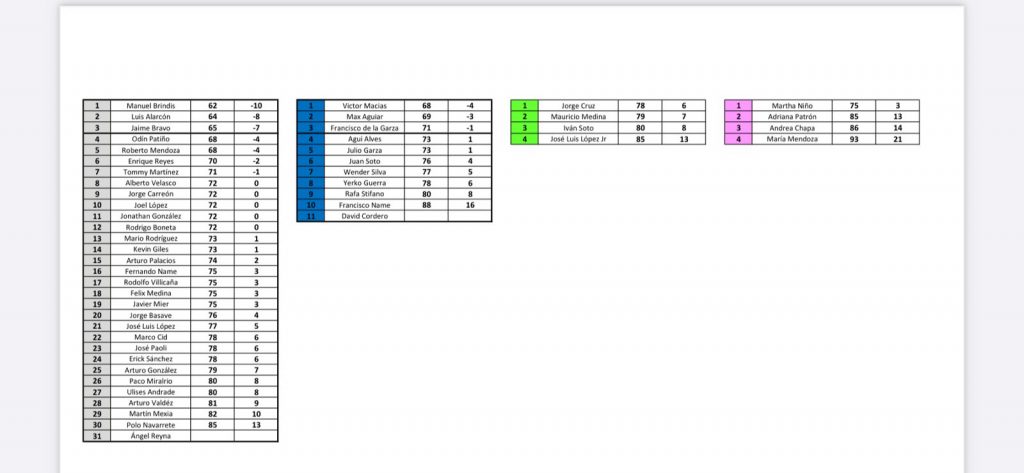 Adriana Patrón obtuvo la mejor participación al culminar en 2do Lugar de la categoría Damas, firmando una tarjeta de 13 golpes arriba de par. El primer lugar fue para Martha Niño (+3) y el podio lo completo Andrea Chapa (+14).