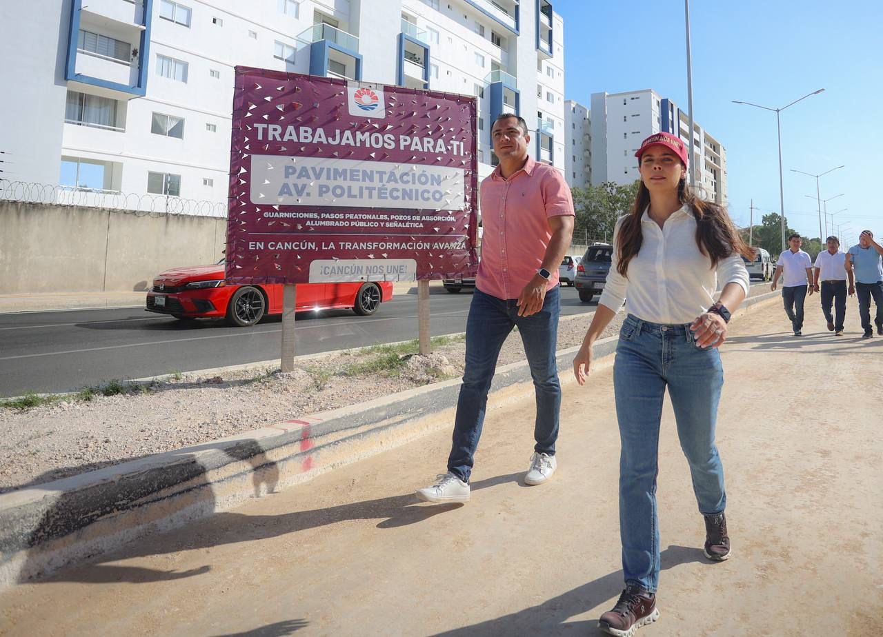 PODER Y CRÍTICA | REDACCIÓN | En un constante trabajo para construir caminos de la transformación, que permitan mejorar las condiciones de las vialidades en Cancún, autoridades municipales del Ayuntamiento de Benito Juárez constataron los trabajos de pavimentación de la Av. Politécnico, una de las principales arterias de la ciudad, que permitirá crear un beneficio directo para automovilistas y transeúntes.