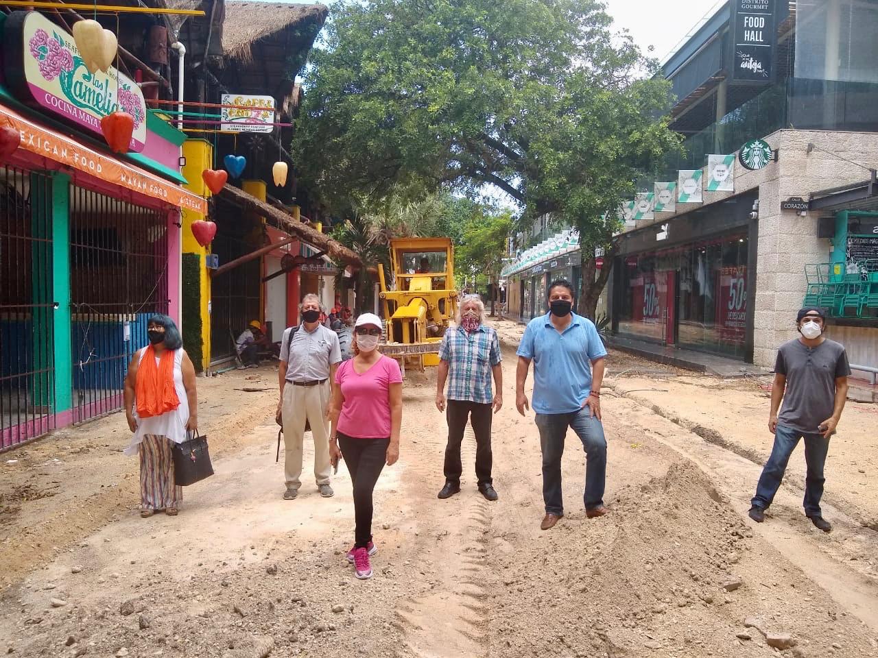 Playa Del Carmen, Q. Roo, Sábado 13 de Junio de 2020, poderycrítica.- El presidente del Consejo Coordinador Empresarial de la Riviera Maya (CCERM), Lenin Amaro Betancourt en compañía de integrantes del Comité Vecinal de la Zona Turística de Playa del Carmen u diversas asociaciones ciudadanas y medio ambientales realizaron un recorrido para supervisar el avance en los trabajos de remodelación de la Quinta Avenida y el Parque Fundadores; obras que deberán concluirse a la brevedad posible para evitar afectación económica a los empresarios y prestadores de servicios de la arteria turística y comercial más importante del Caribe Mexicano.