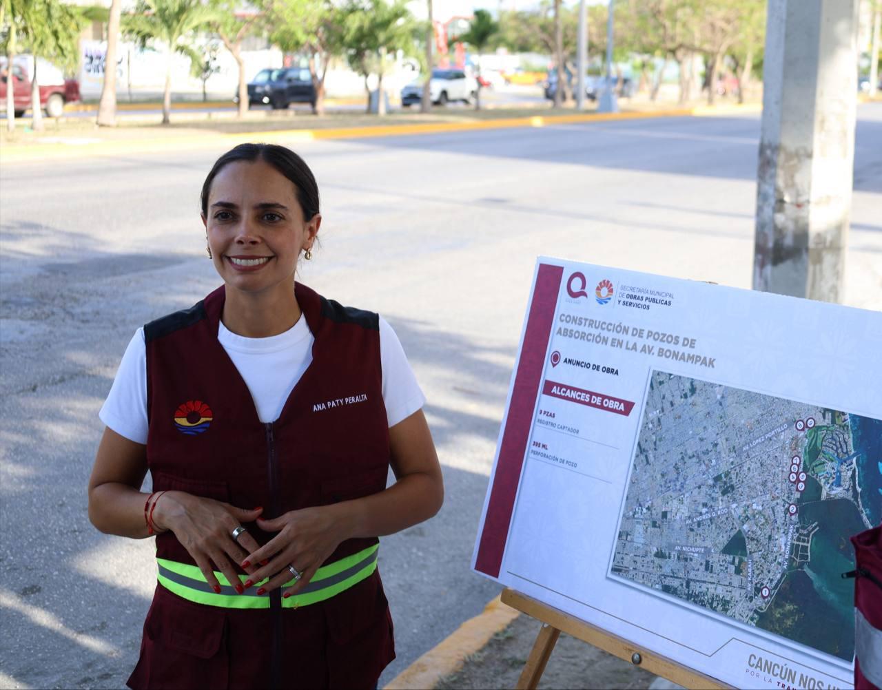 Poder y Crítica | Redacción |  Como parte del compromiso por crear una ciudad más segura, funcional y resiliente, este viernes la Presidenta Municipal, Ana Paty Peralta, anunció la construcción de nueve pozos de absorción en la avenida Bonampak, entre la avenida José López Portillo y el Blvd. Colosio, una de las principales vialidades de Cancún.