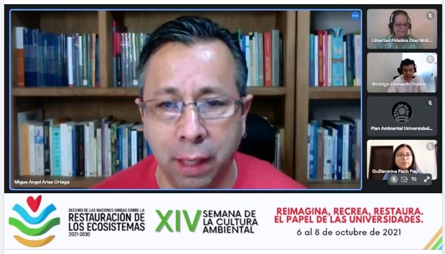 Explicó que el lema de esta XIV edición, “Imagina, Recrea y Restaura el papel de las Universidades”, se centra en el Día mundial del medio y ambiente, y se eligió porque en 2021 dio arranque el decenio de la Naciones Unidas sobre la restauración de ecosistemas, que es una tarea global.