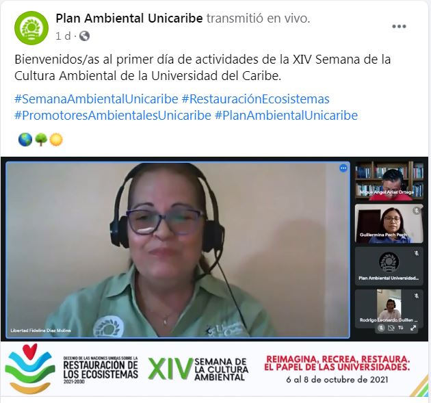 La Mtra. Guillermina Pech Pech, Coordinadora del Comité de Sostenibilidad de la Unicaribe, señaló que la Semana de la Cultura Ambiental se ha desarrollado desde 2008, a iniciativa de las y los estudiantes, con el objetivo abordar la problemática ambiental desde una perspectiva multidisciplinaria.
