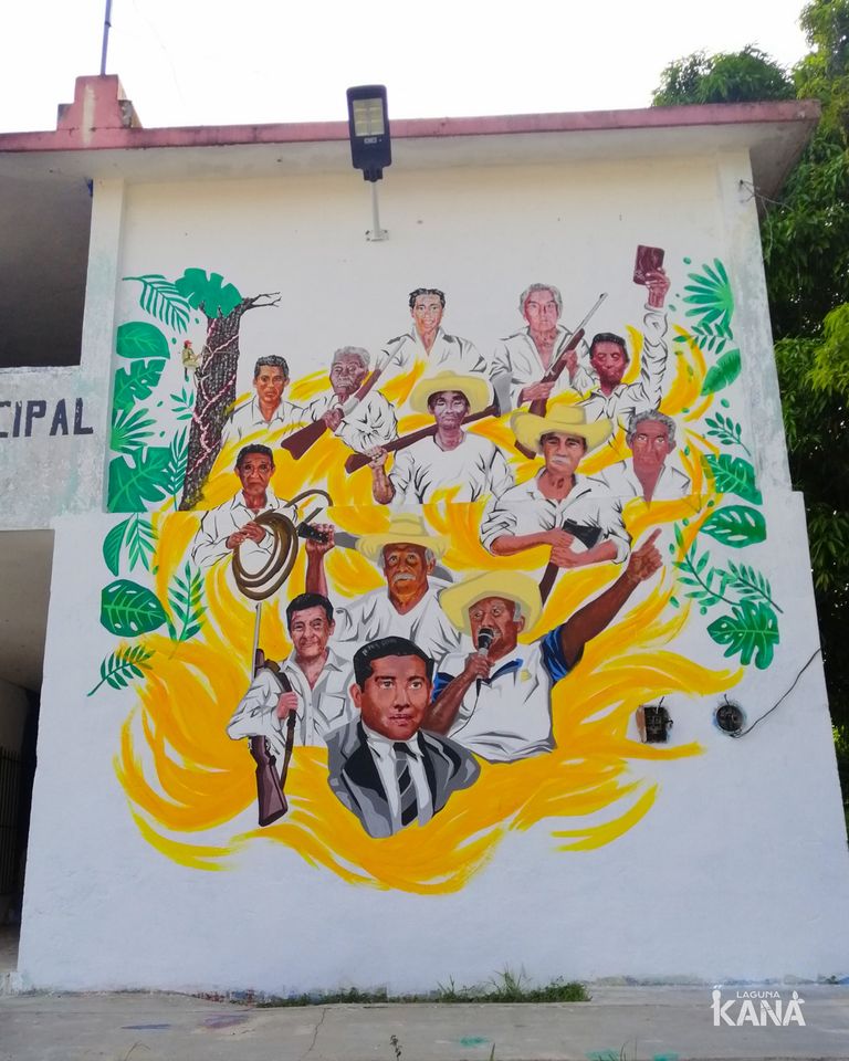 La autoridad comunitaria plasmó en un mural en la que se retrató a los primeros pobladores de la comunidad de Laguna Kaná tales como Juan Bautista Tec Kantun, Anastasio Kumul Kantun, Narciso Tec Kumul, José Dzul, Federico Dzul, así como Manuel Jimenez Nah, líder natural que luchó por los derechos de los ejidatarios.