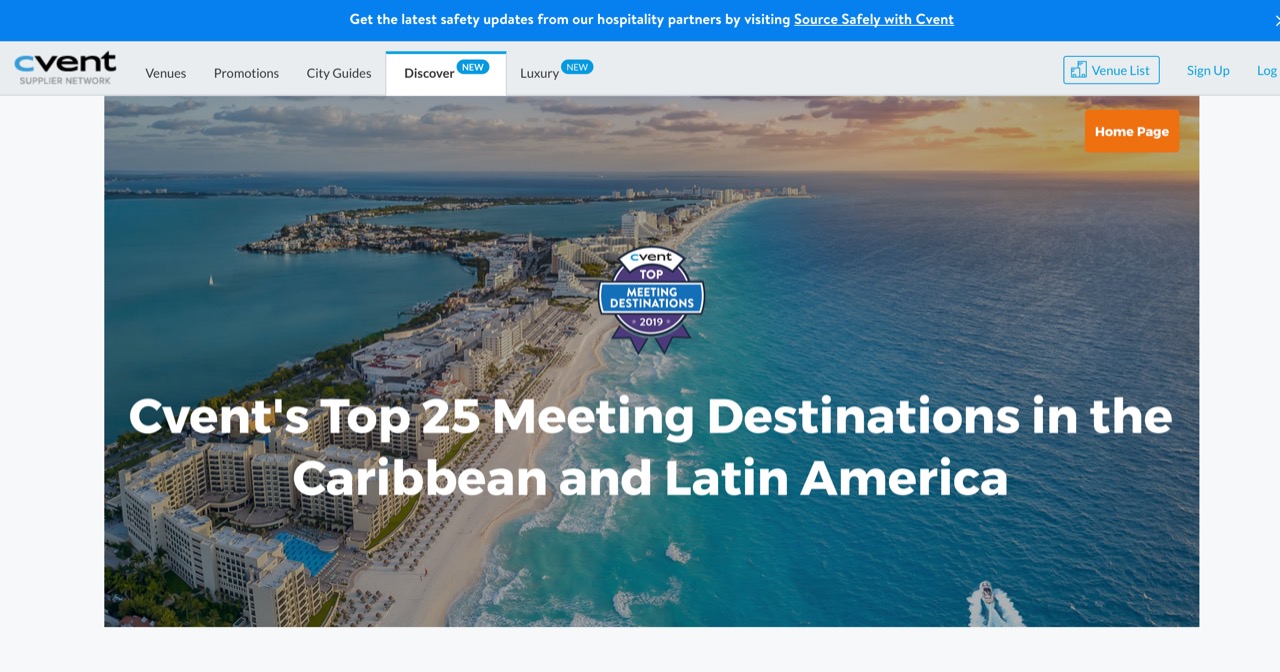 Finalmente, C-VENT la plataforma especializada en eventos de grupos y reuniones con más de 300 mil usuarios en todo el mundo, dio a conocer la lista de los 25 lugares del Caribe y Latinoamérica para realizar eventos de turismo de reuniones de 2019, donde destaca a 3 de los destinos turísticos del Caribe Mexicano como favoritos: